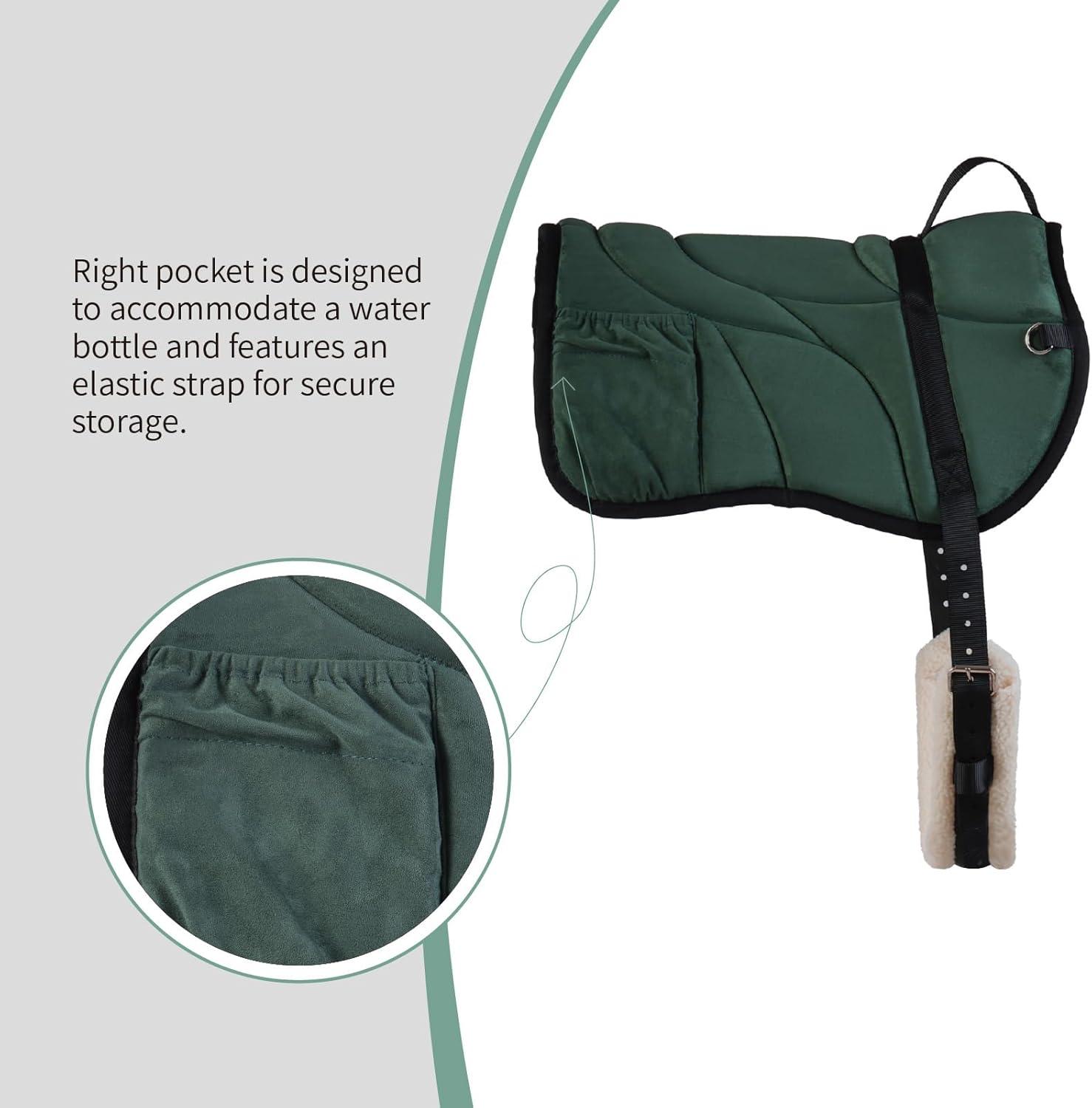 Harrison Howard Ergonomically Designed Correct Bareback Pad with Side Pockets Extra Thick Center for Maximum Support Anti-Slip Bareback Pad Comes with Matching Girth(Hunter Green)