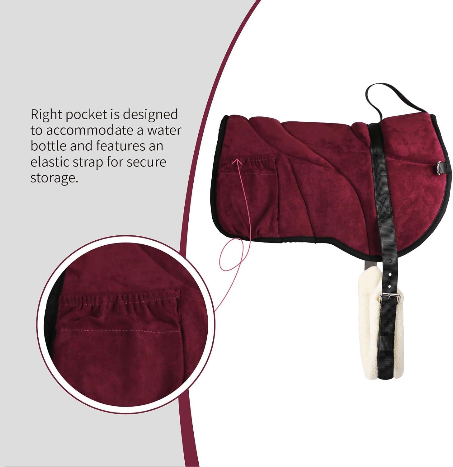 Harrison Howard Ergonomically Designed Correct Bareback Pad with Side Pockets Extra Thick Center for Maximum Support Anti-Slip Bareback Pad Comes with Matching Girth(Burgundy)