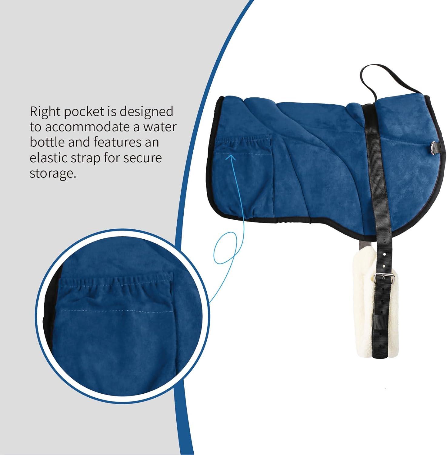 Harrison Howard Ergonomically Designed Correct Bareback Pad with Side Pockets Extra Thick Center for Maximum Support Anti-Slip Bareback Pad Comes with Matching Girth(Navy)