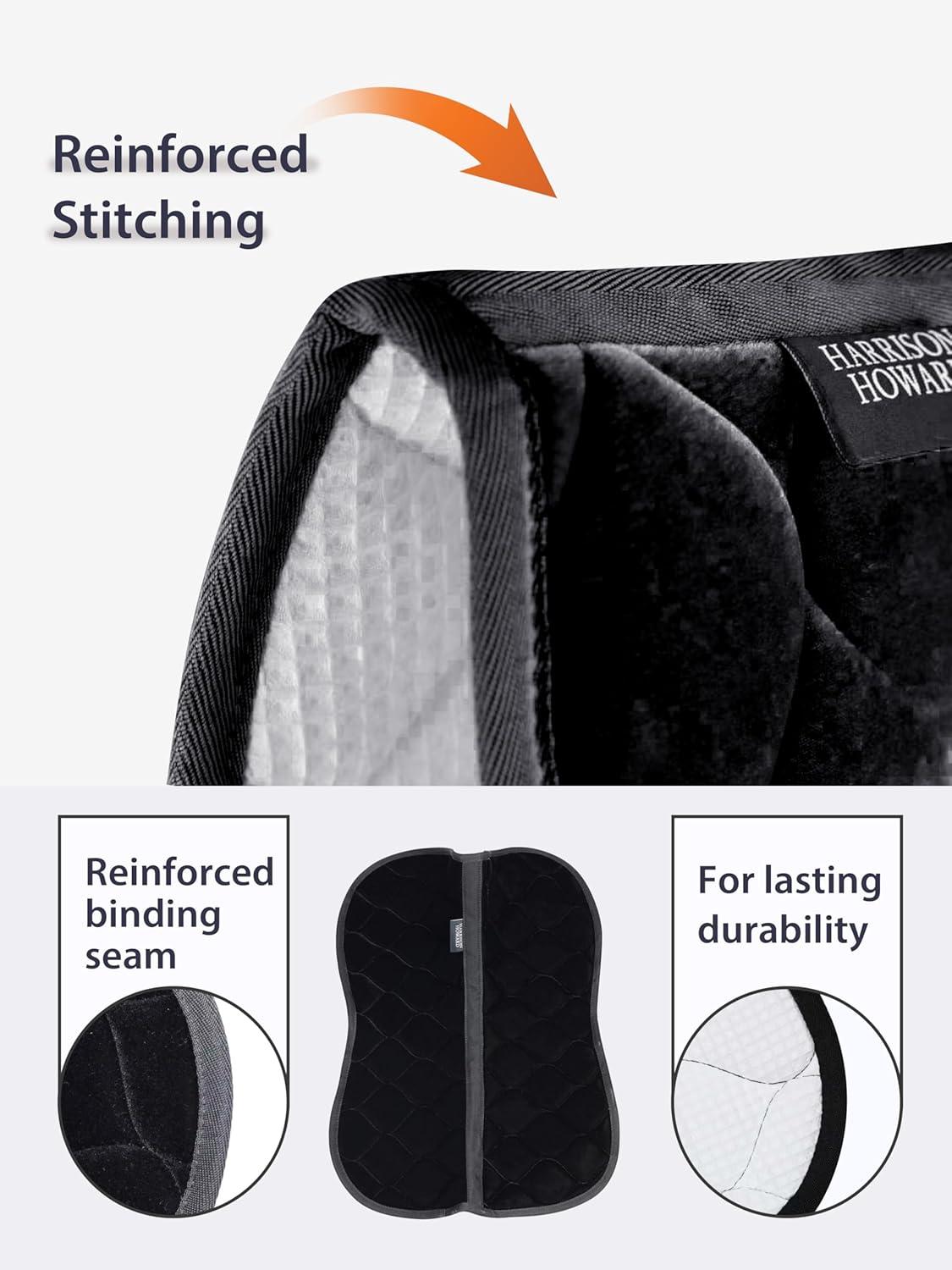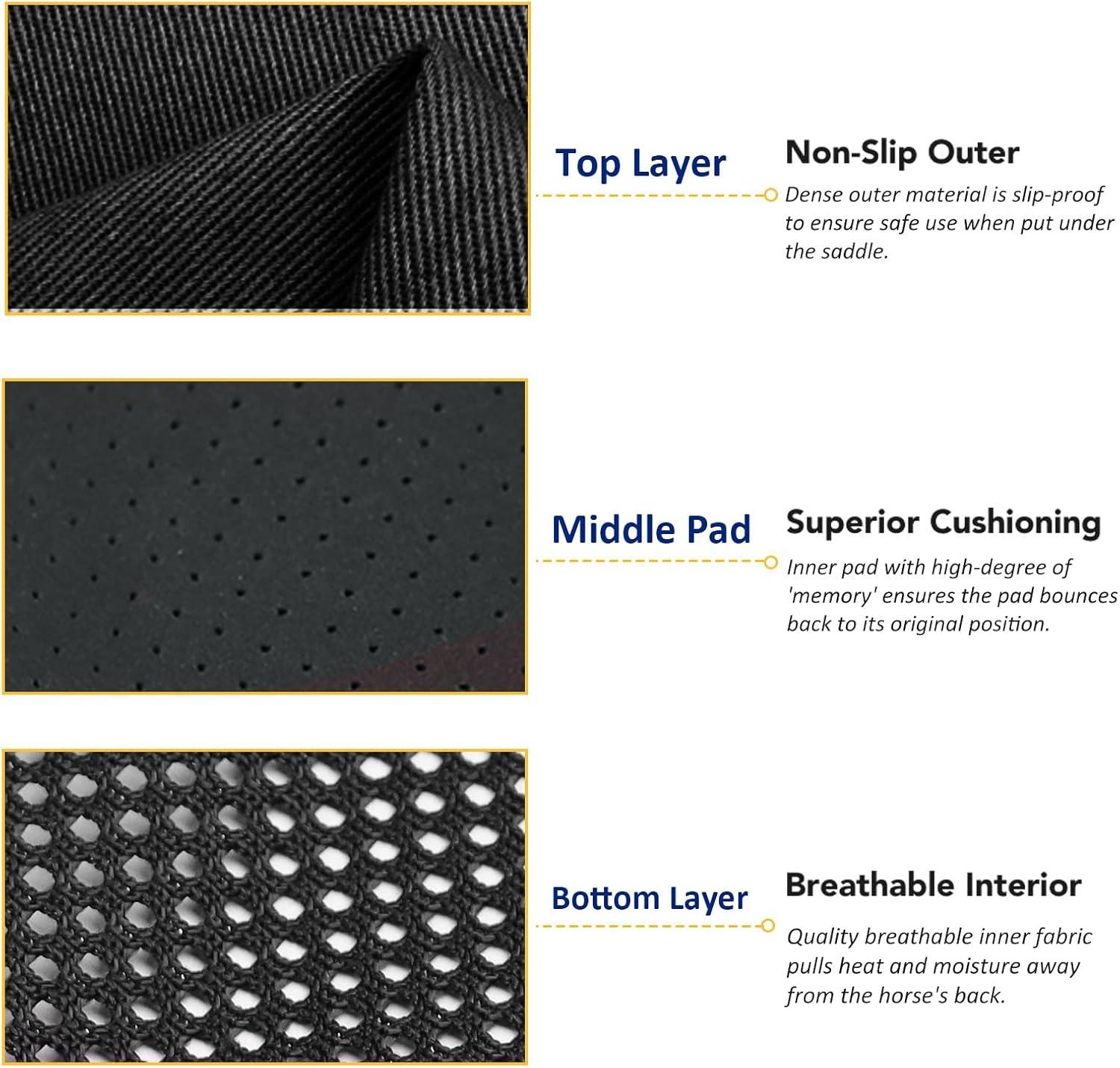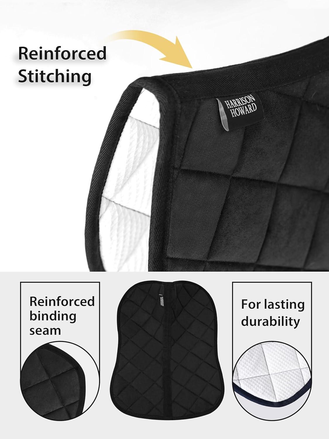 Harrison Howard Half Saddle Pad for Horses, Breathable Shock Absorbing English Saddle Pad for Jumping, Training & Eventing(Black)