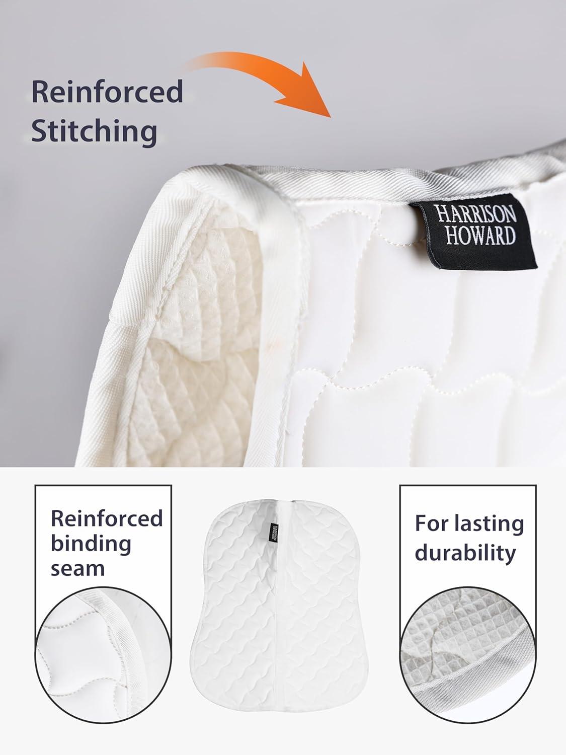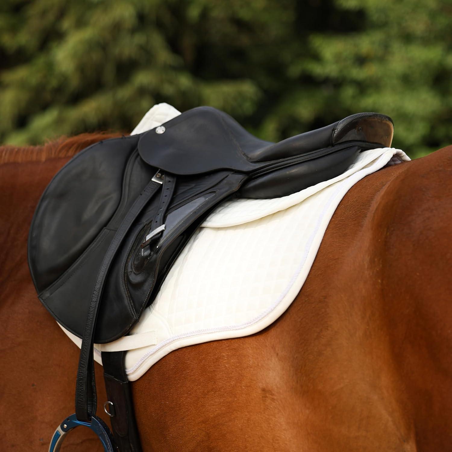 Harrison Howard Half Saddle Pad for Horses, Breathable Shock Absorbing English Saddle Pad for Jumping, Training & Eventing(White)