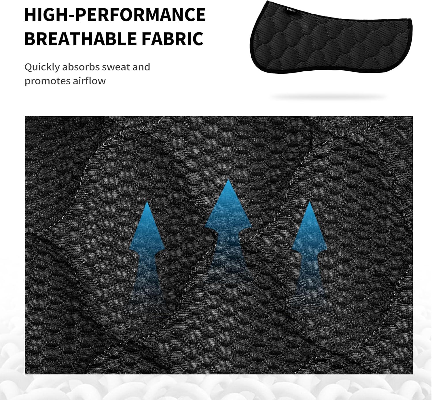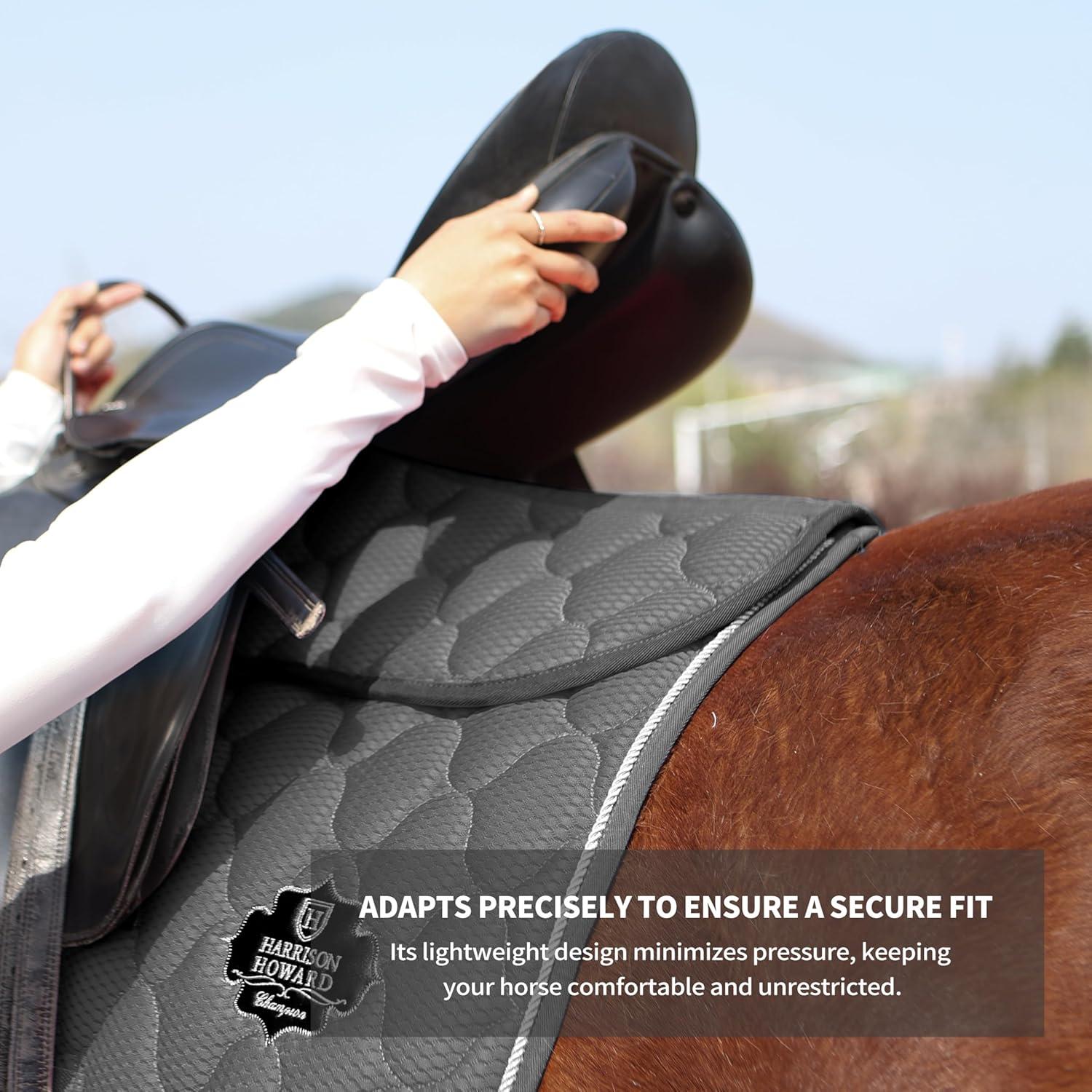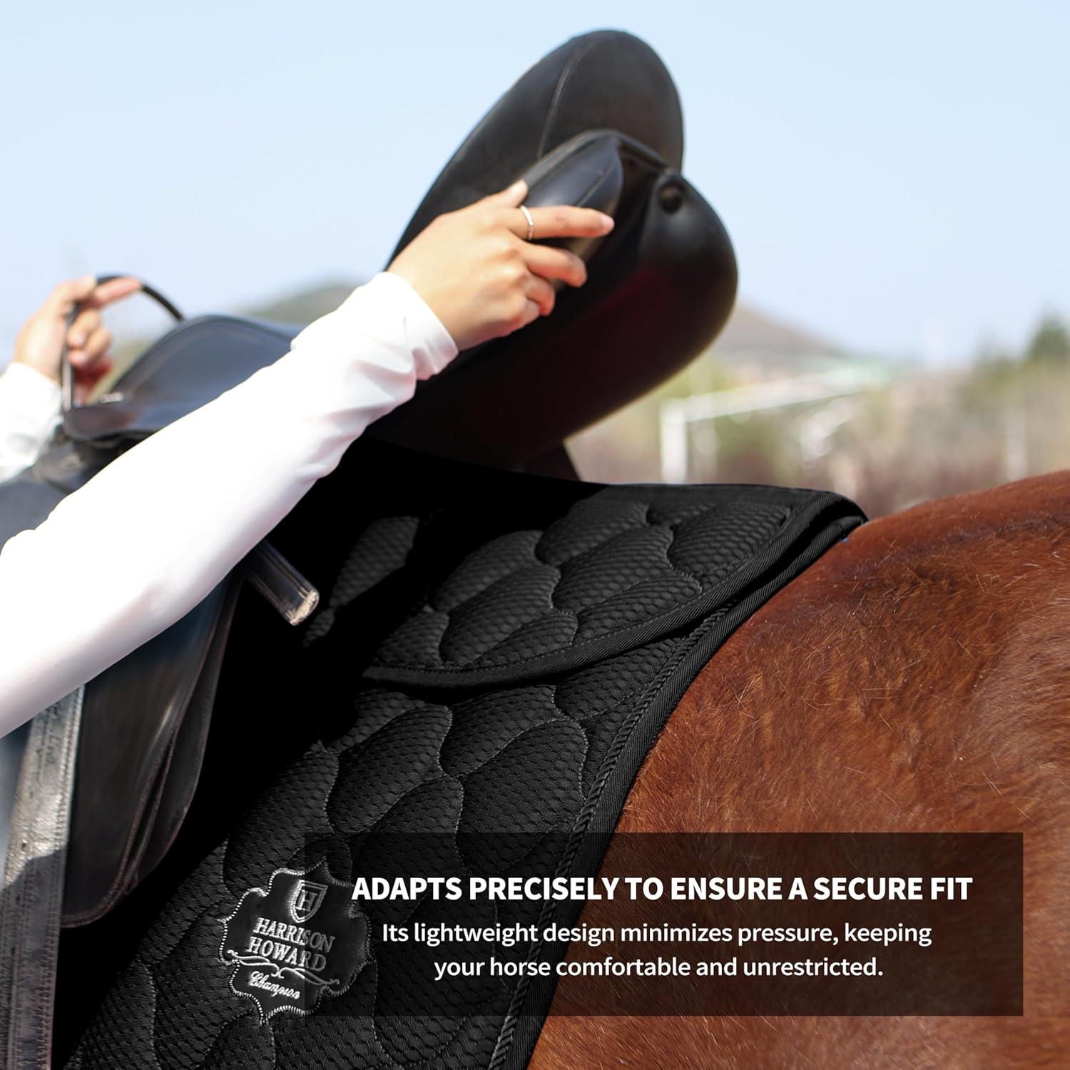 Harrison Howard Half Saddle Pad for Horses, Breathable Shock Absorbing English Saddle Pad for Jumping, Training & Eventing(Black)