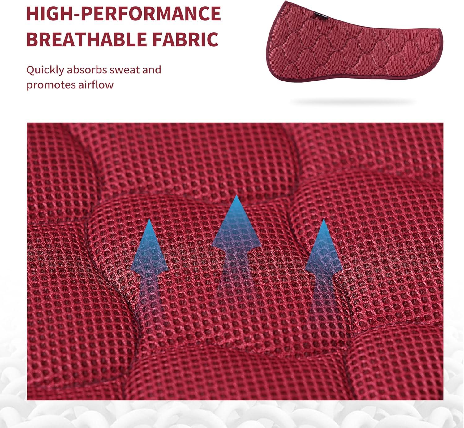 Harrison Howard Mesh Riding Half Pad for English Saddle Comfortable Cushioning Reduce Pressure on Horse’s Back(Burgundy)