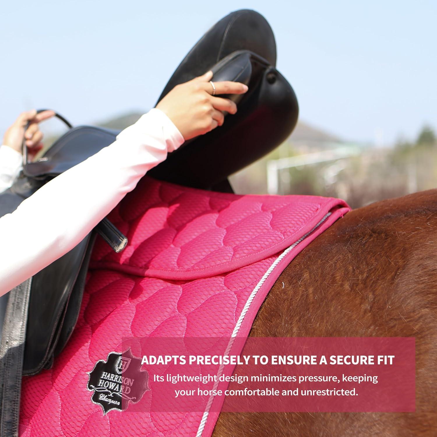 Harrison Howard Half Saddle Pad for Horses, Breathable Shock Absorbing English Saddle Pad for Jumping, Training & Eventing(Magenta)