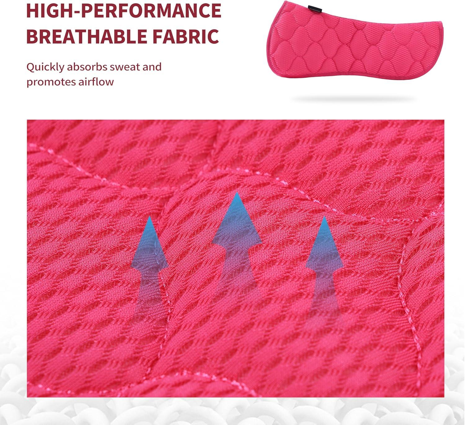 Harrison Howard Mesh Riding Half Pad for English Saddle Comfortable Cushioning Reduce Pressure on Horse’s Back(Magenta)