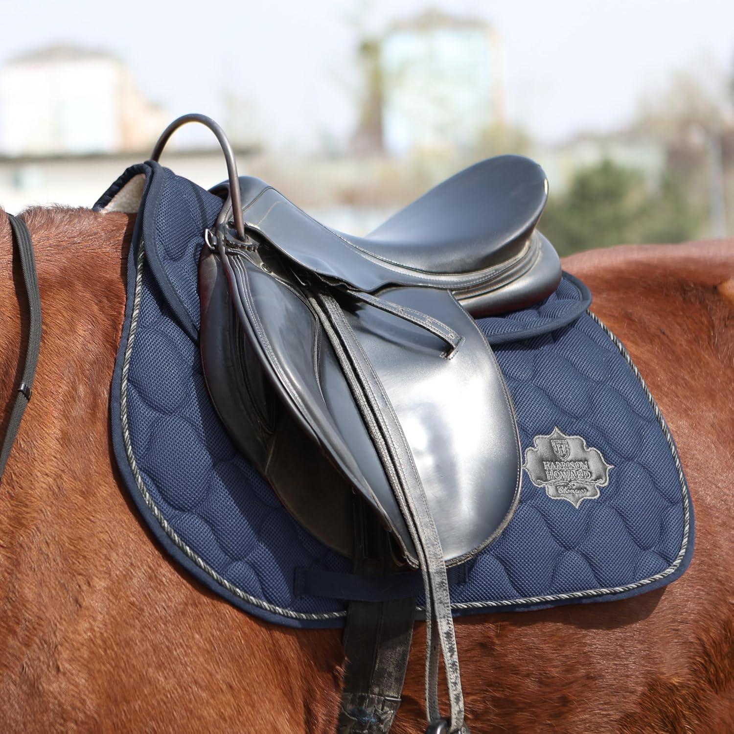 Harrison Howard Horse Half Pad – Shock-Absorbing, Soft & Breathable English Saddle Pad for Horses(Navy)