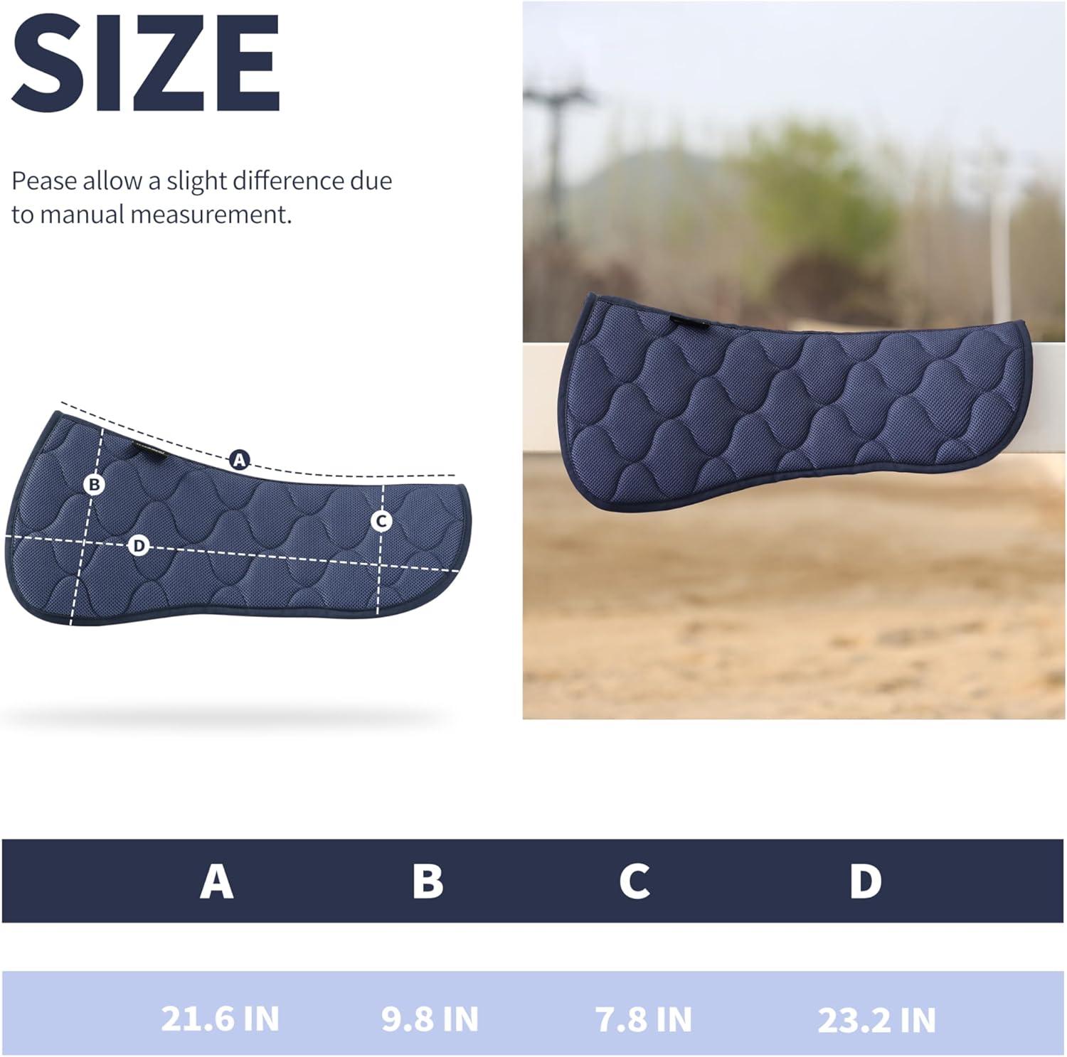 Harrison Howard Half Pad Pressure Relief Injury Prevention for Horses, Contoured Fit, Breathable Horse Riding Saddle Pad(navy)