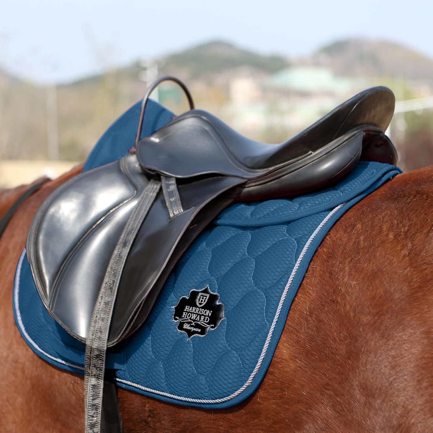 Harrison Howard Horse Half Pad – Shock-Absorbing, Soft & Breathable English Saddle Pad for Horses(Peacock Blue)