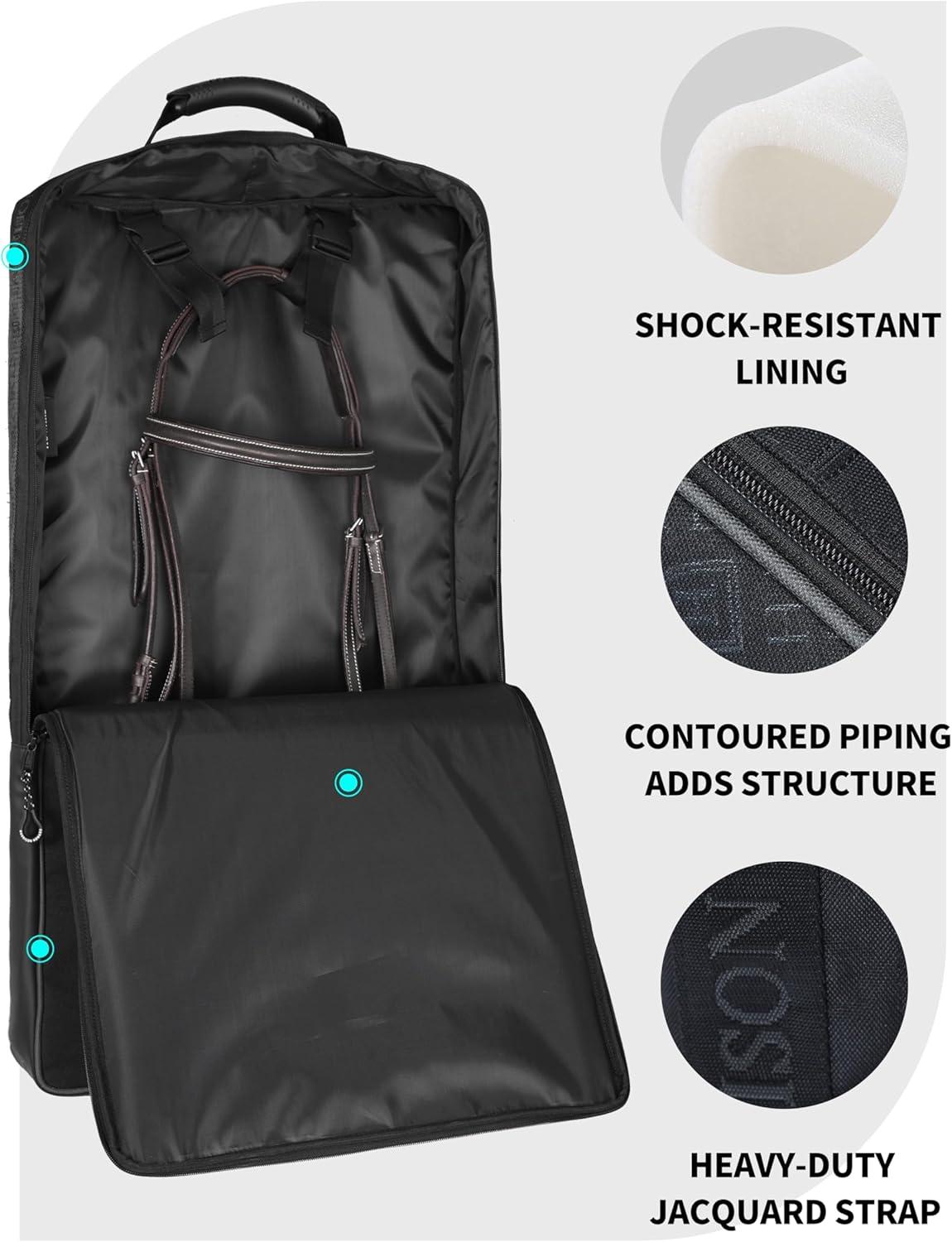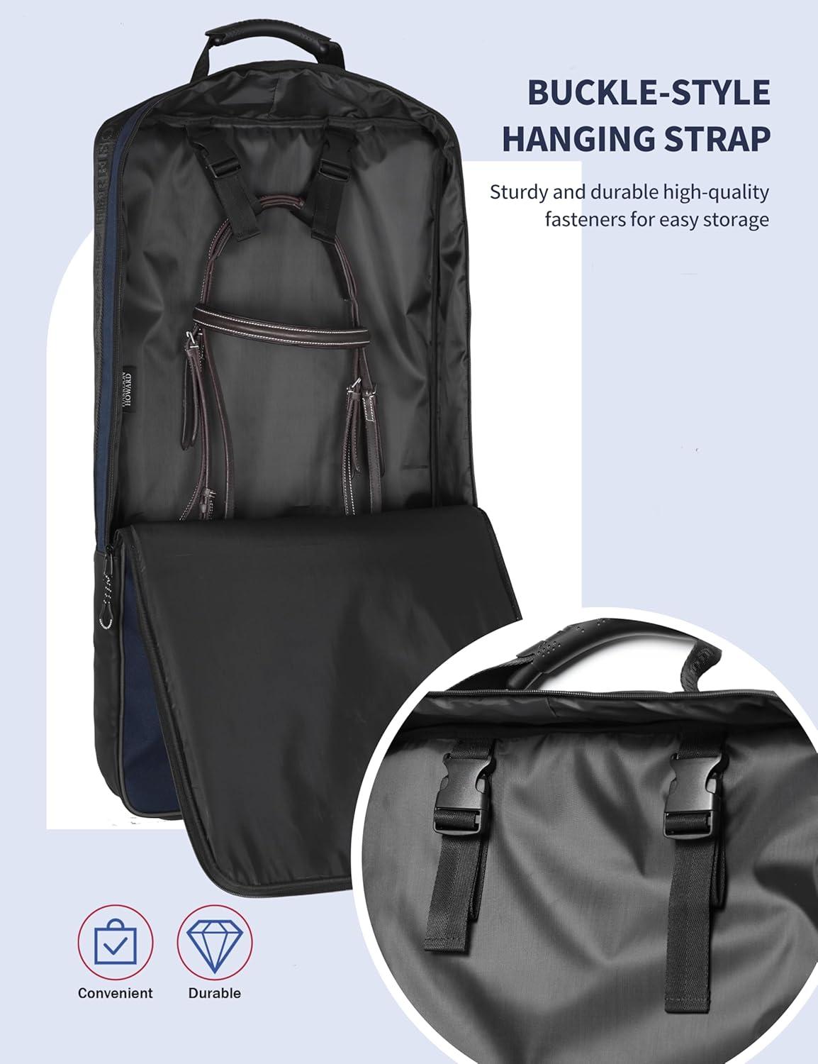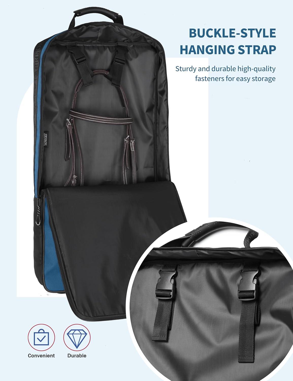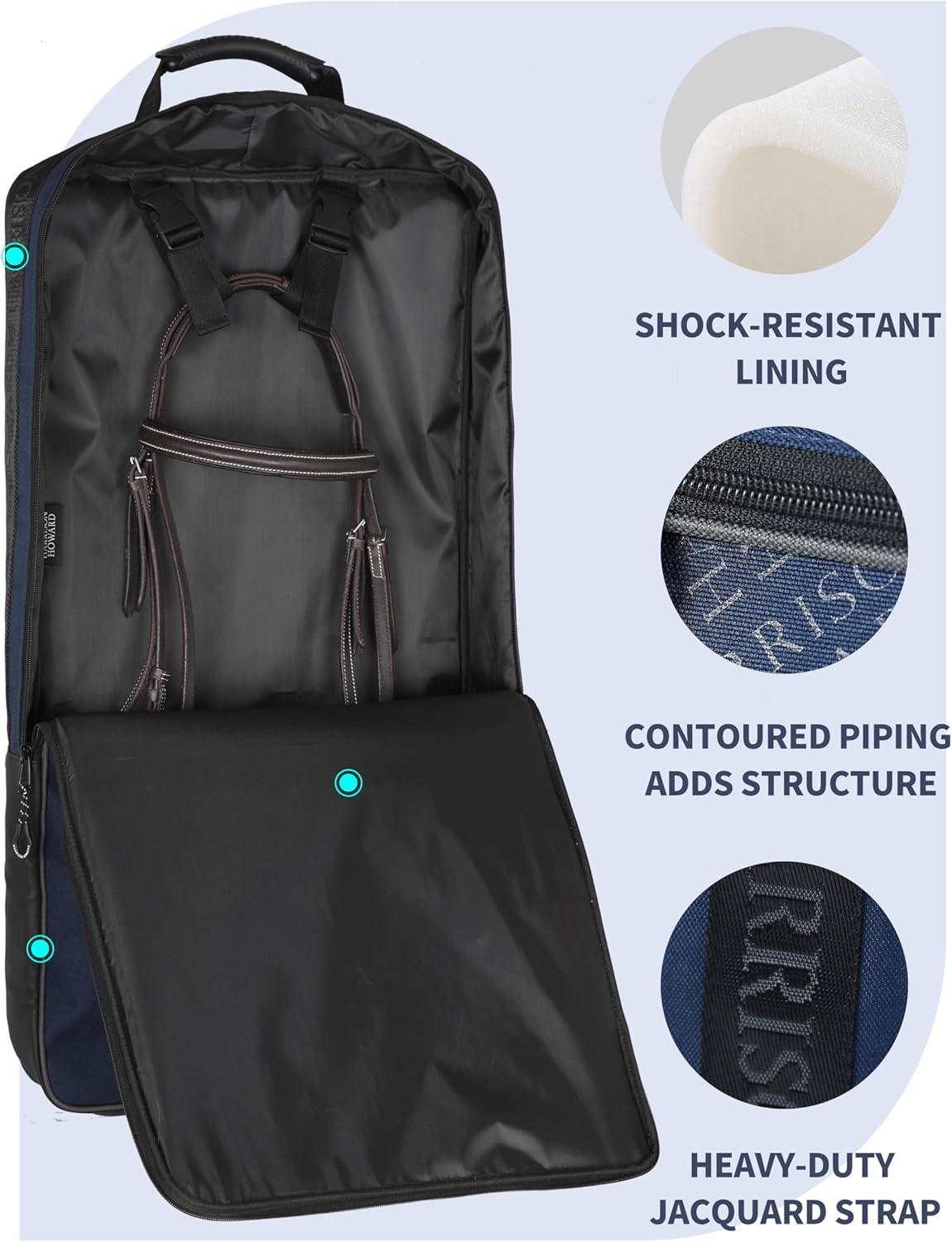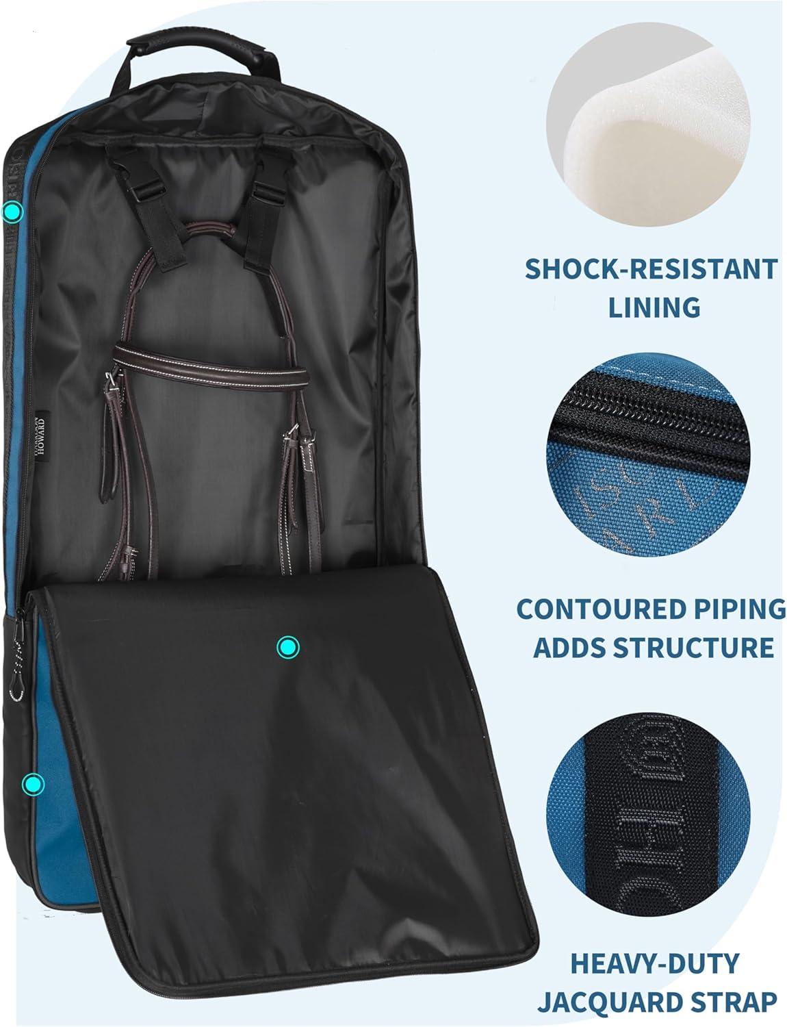 Harrison Howard Waterproof Bridle Bag Halter Bag for Horses with 3 Prong Tack Rack Sturdy Fabric Horse Tack Carry Bag Blue(Black)
