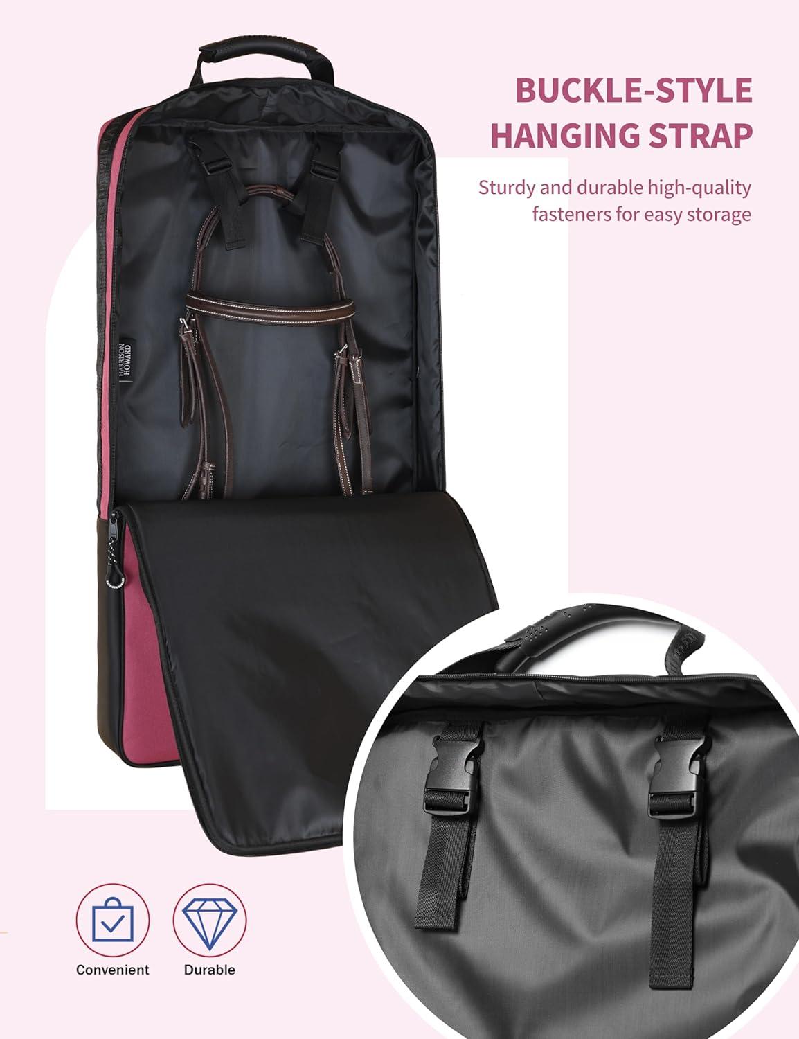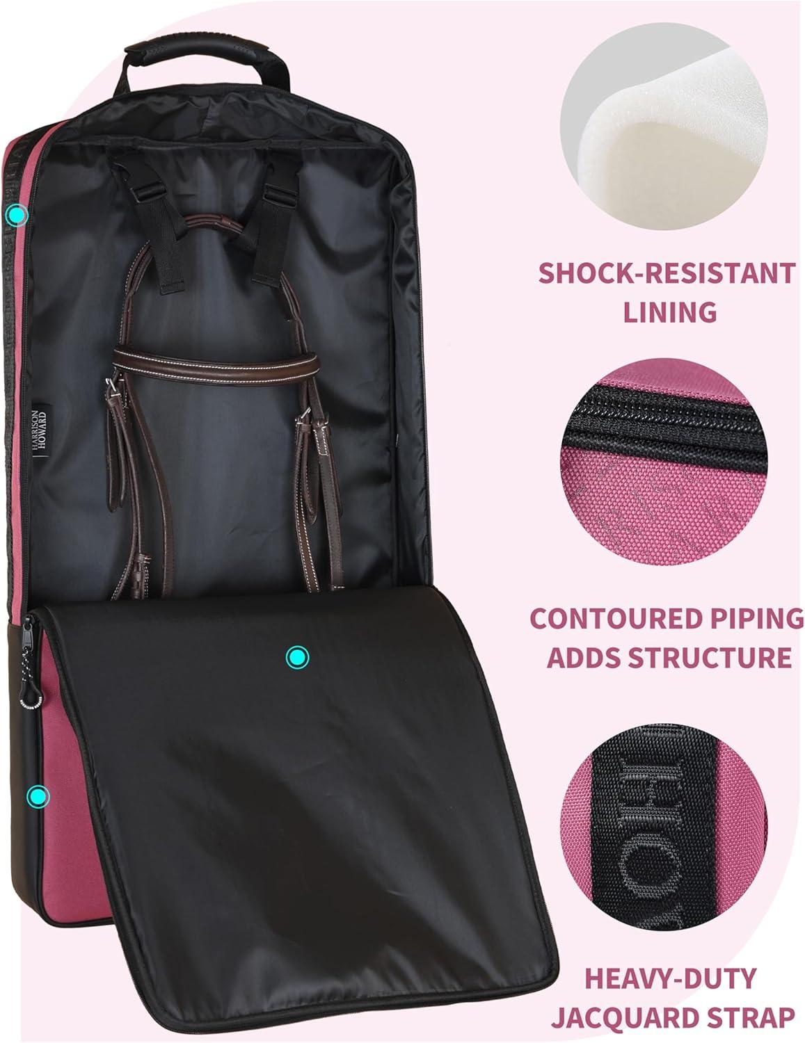 Harrison Howard Waterproof Bridle Bag Halter Bag for Horses with 3 Prong Tack Rack Sturdy Fabric Horse Tack Carry Bag Blue(Pink)