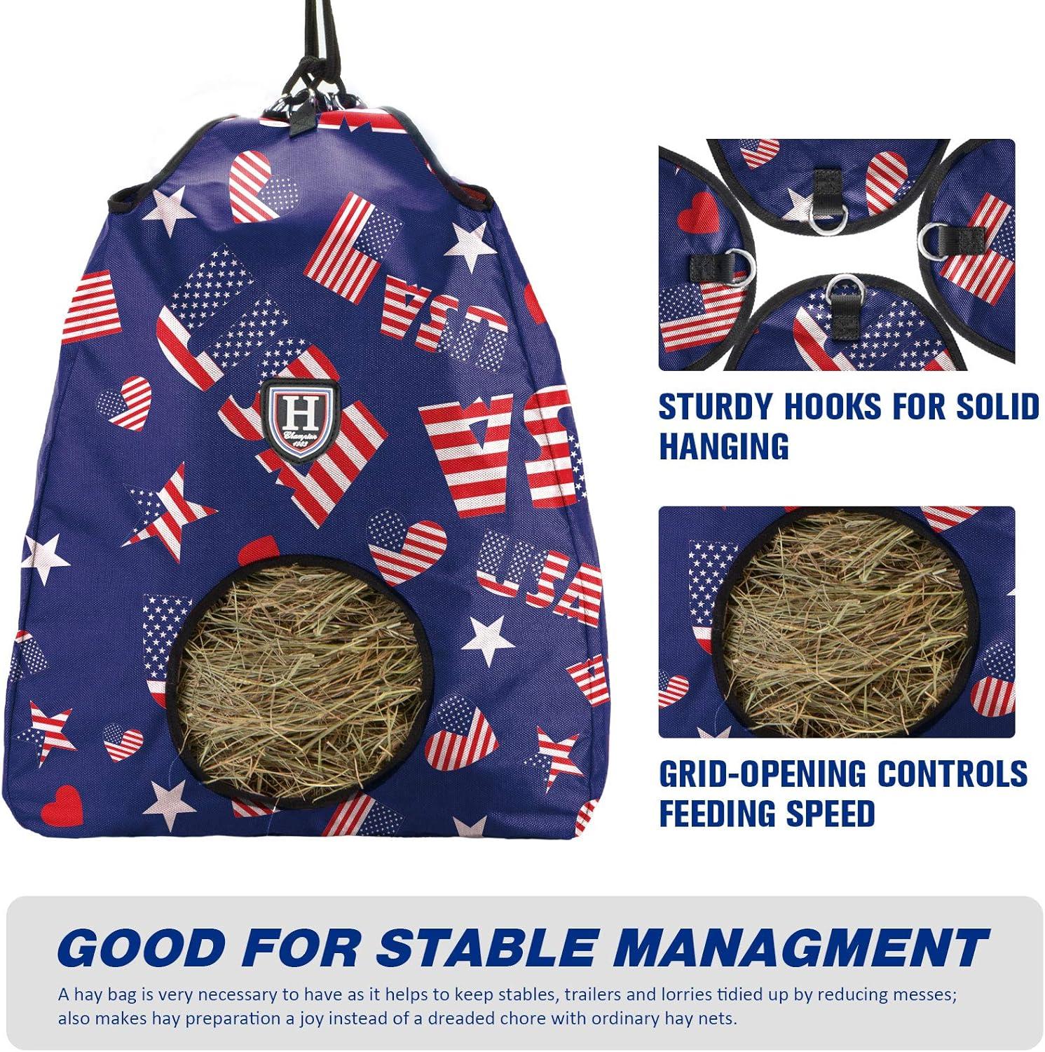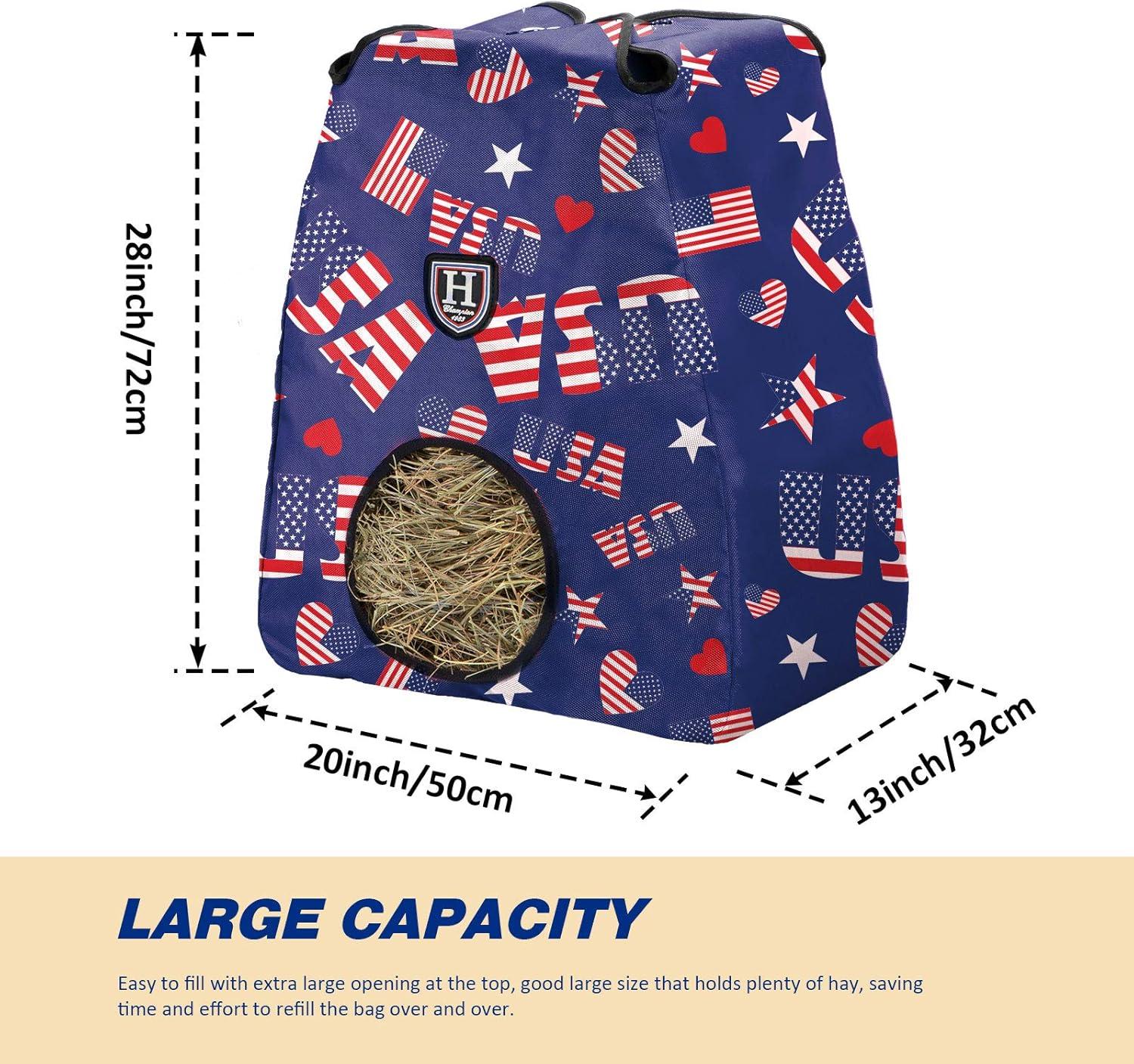 Harrison Howard Premium Durable Horse Hay Bags Slow Feed Hay Bag 1680D Oxford Cloth Heavy Duty Large Capacity Horse Tote Bag-Patriotic Heart
