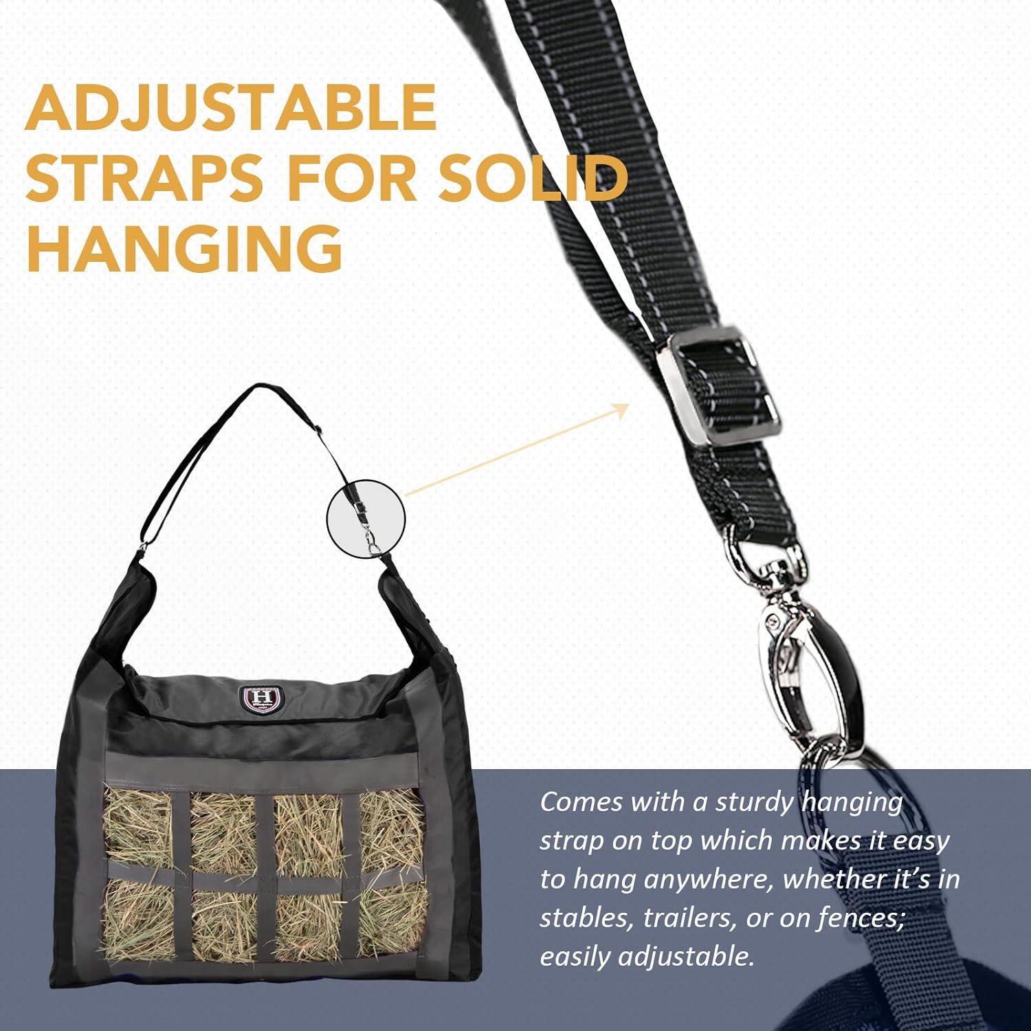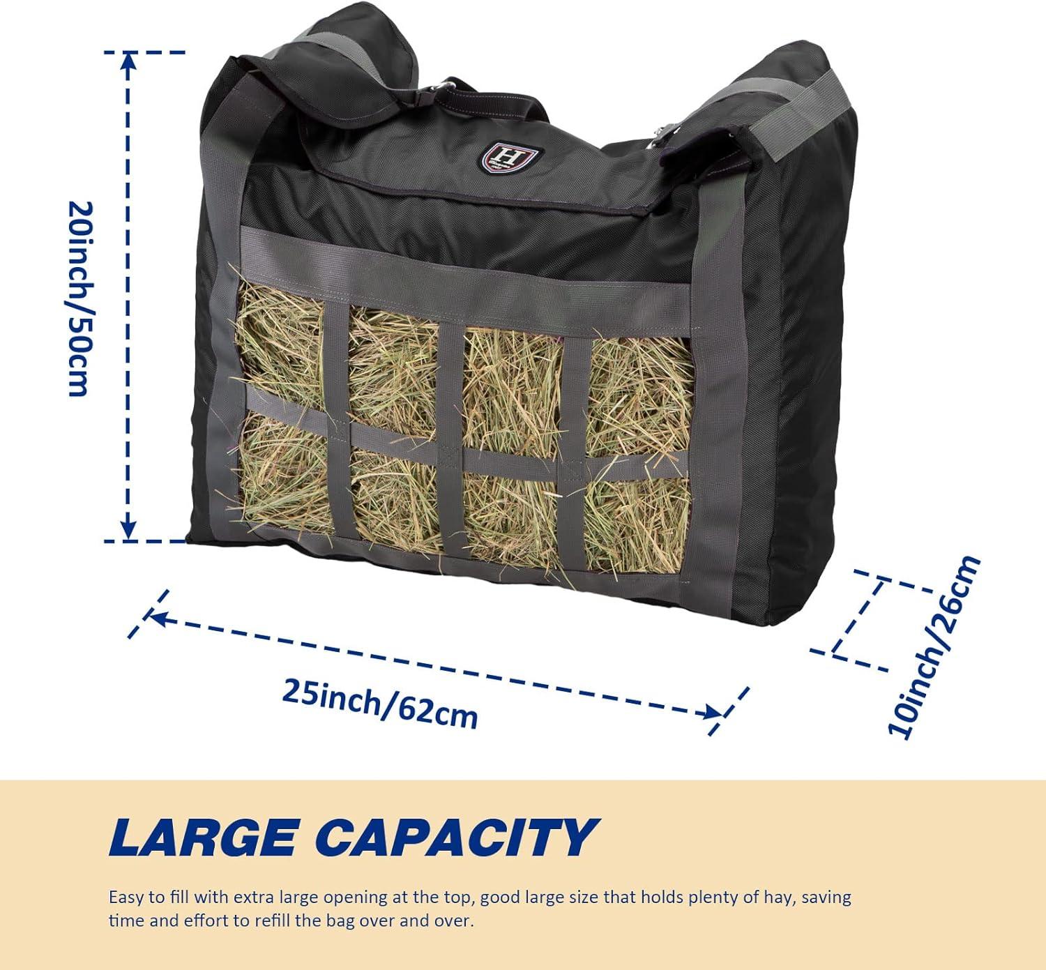 Harrison Howard Premium Durable Slow Feed Horse Hay Bags Oxford Cloth Heavy Duty Large Capacity Horse Feeding Bag-Champion Blue(Black)