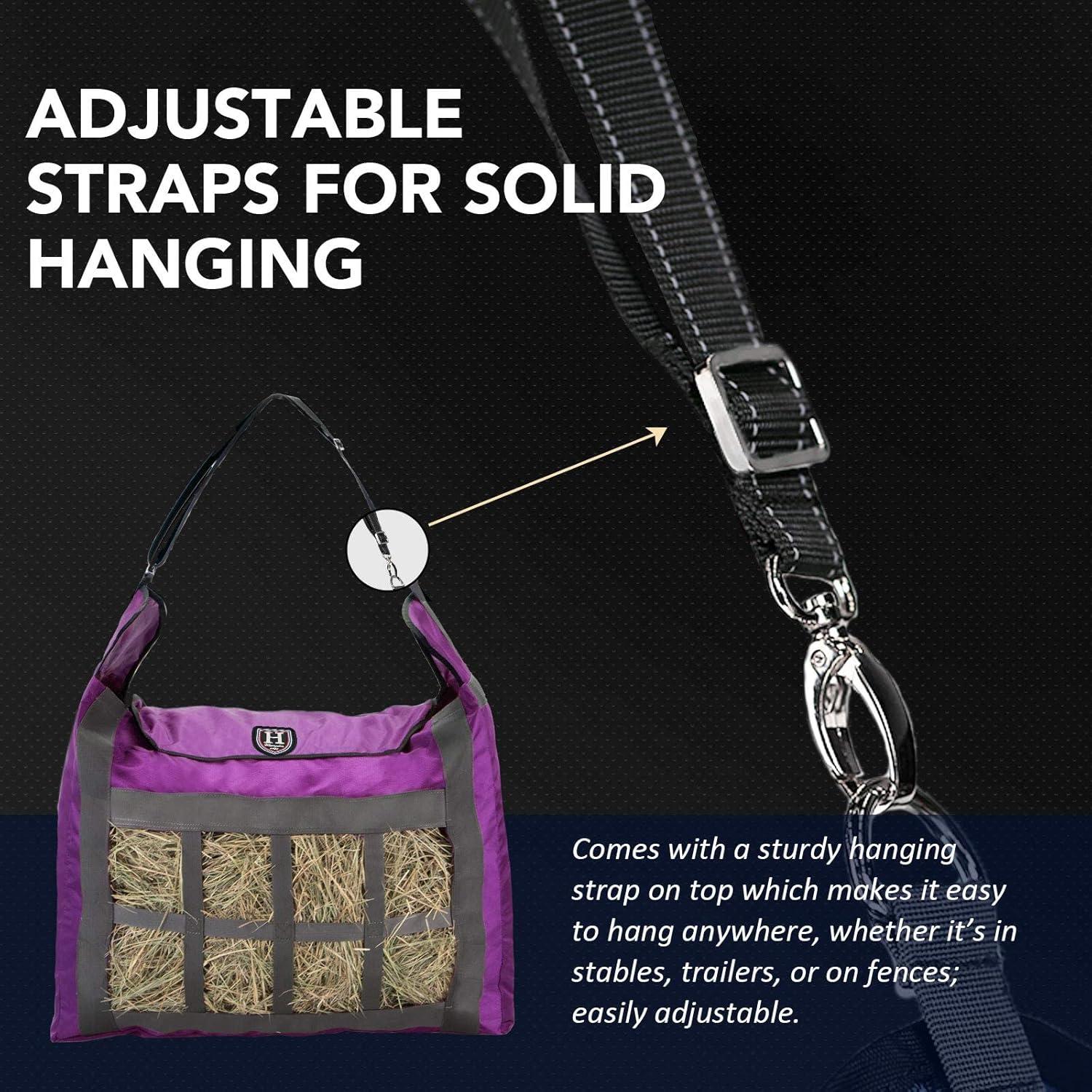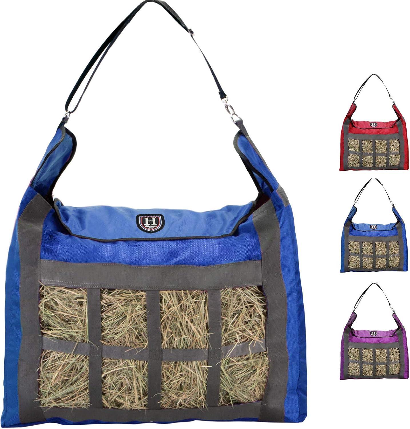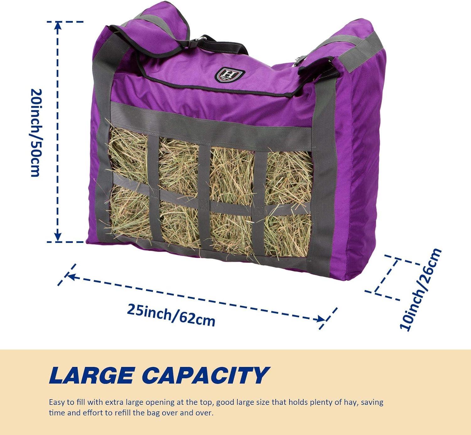 Harrison Howard Premium Durable Slow Feed Horse Hay Bags Oxford Cloth Heavy Duty Large Capacity Horse Feeding Bag-Champion Blue(Regal Purple)