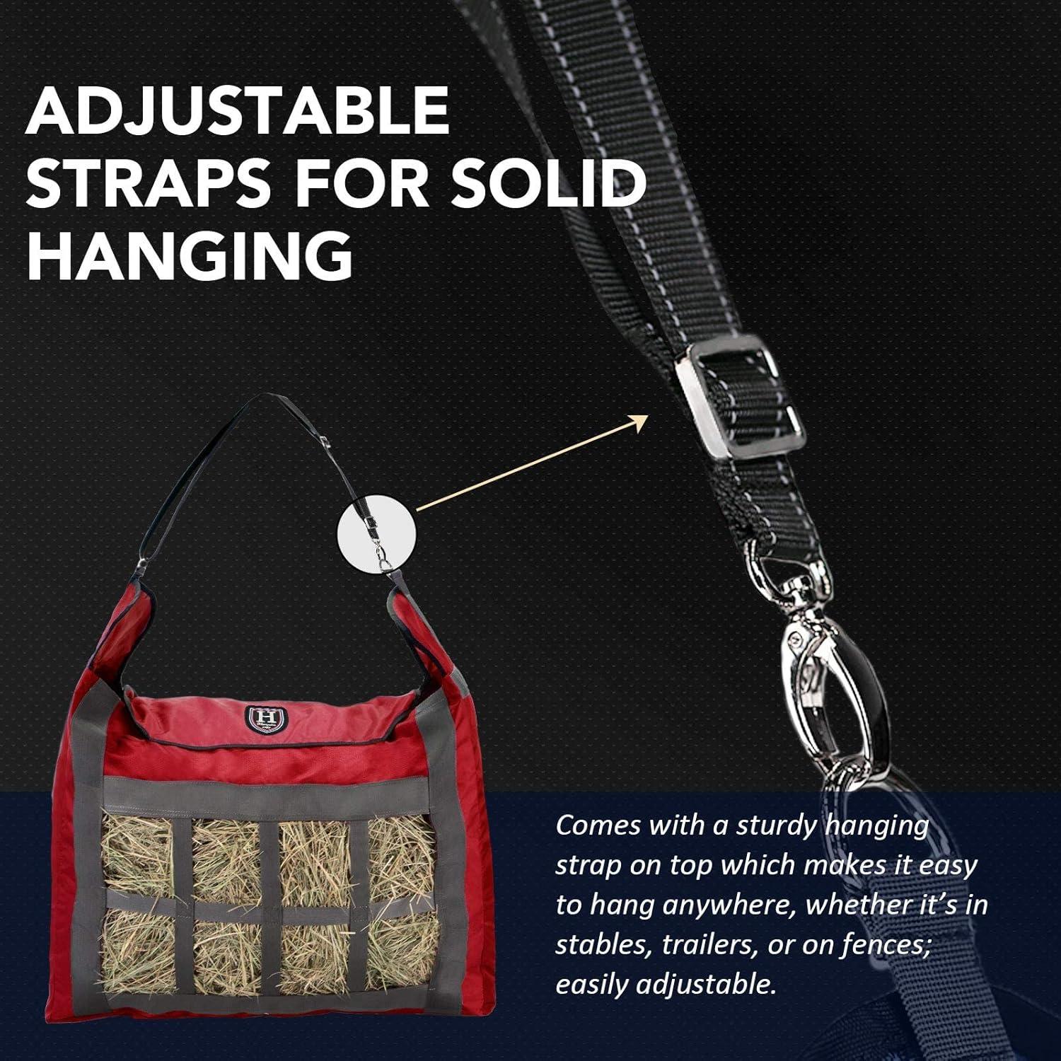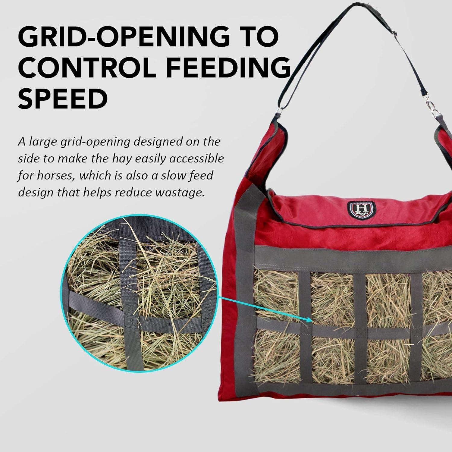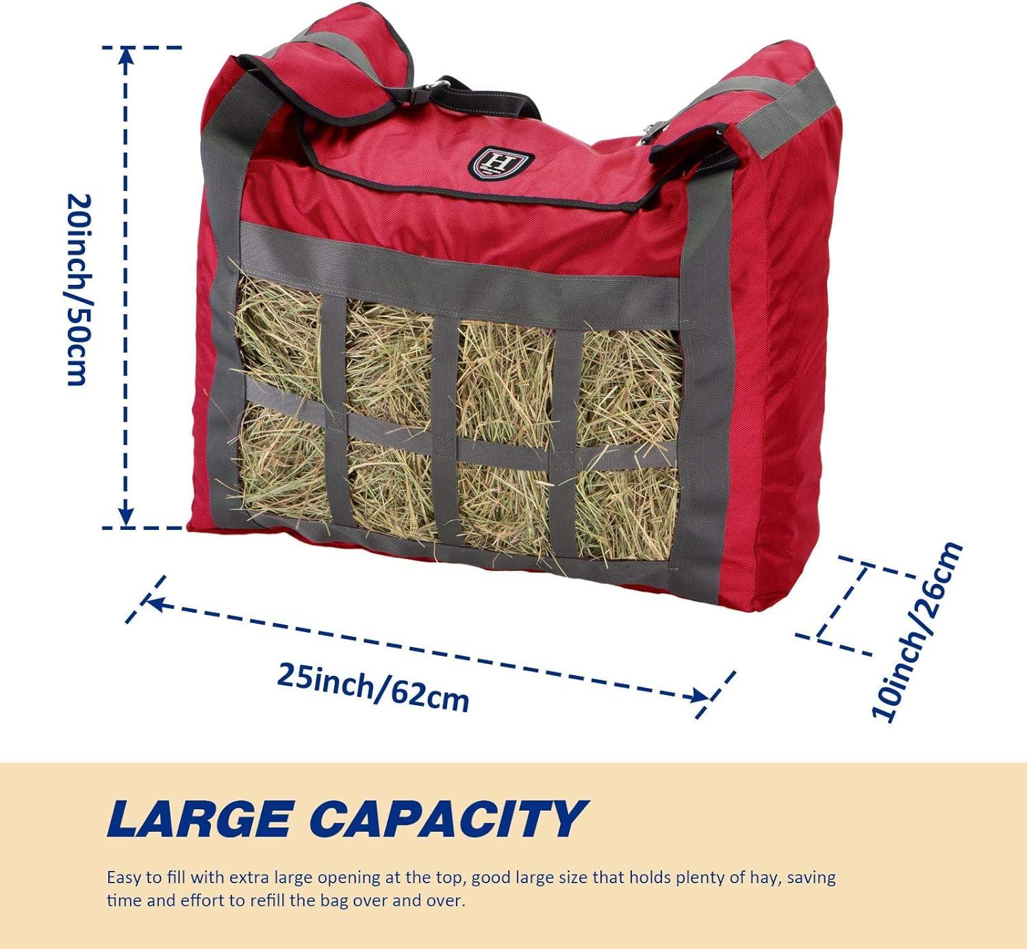 Harrison Howard Premium Durable Slow Feed Horse Hay Bags Oxford Cloth Heavy Duty Large Capacity Horse Feeding Bag-Champion Blue(Scarlet Red)