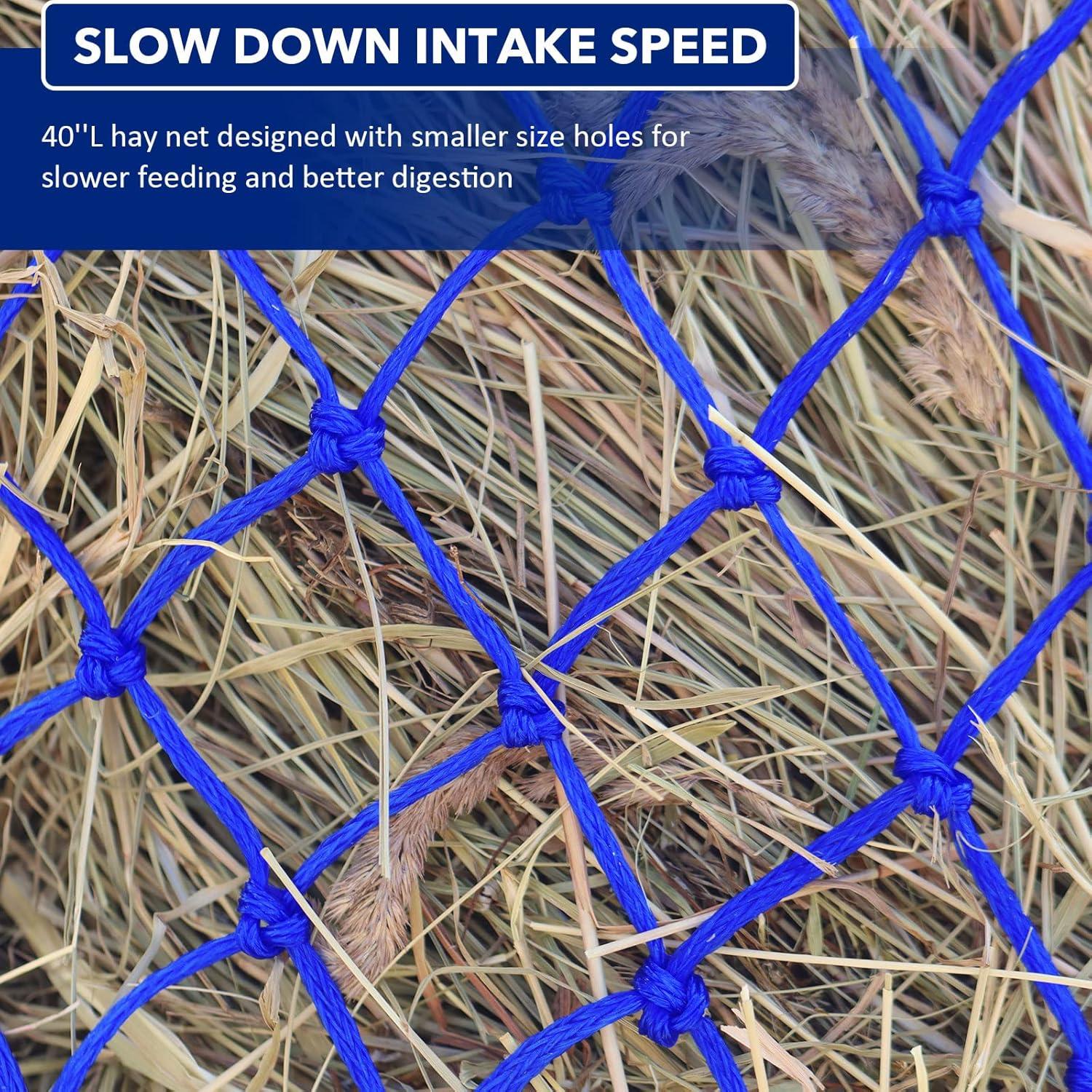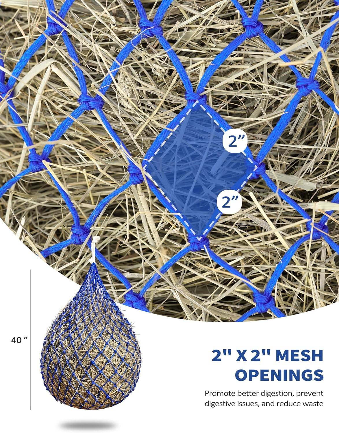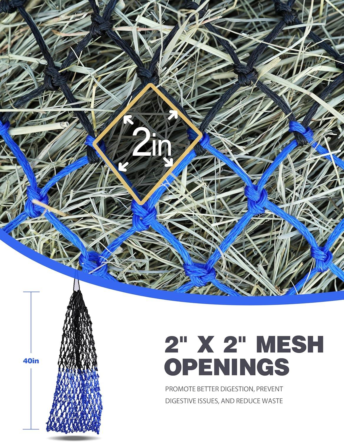 Harrison Howard Slow Feeder Hay Net for Horses and Goats – 2″x2″ Mesh for Controlled Grazing Blue 40-Inch