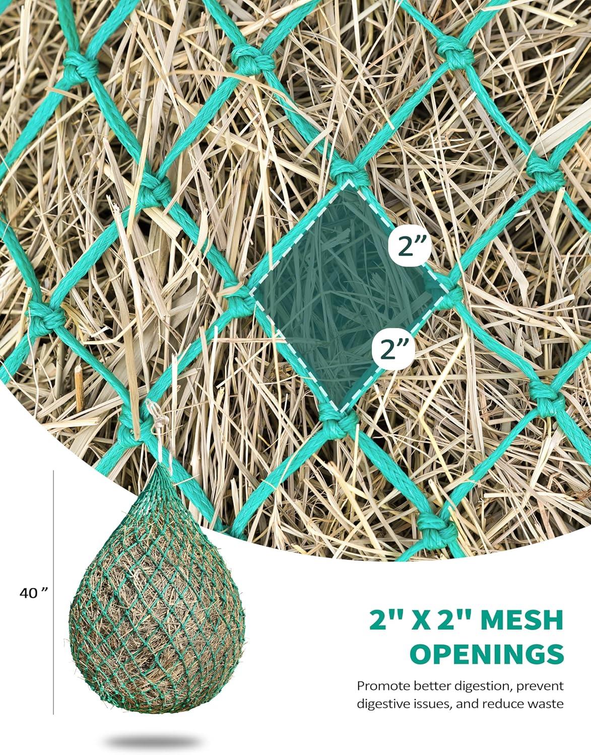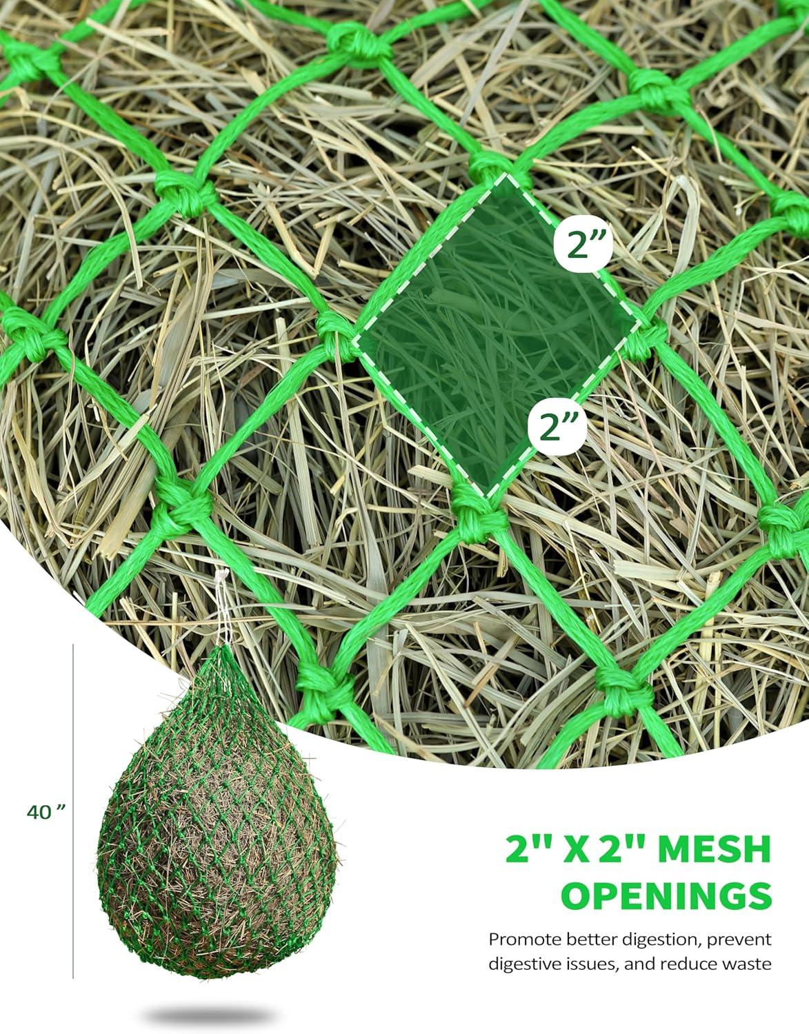 Harrison Howard Slow Feeder Hay Net for Horses and Goats – 2″x2″ Mesh for Controlled Grazing Grass Green