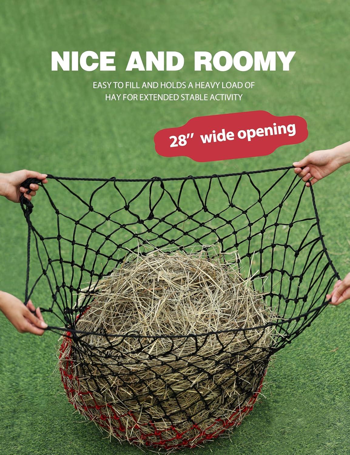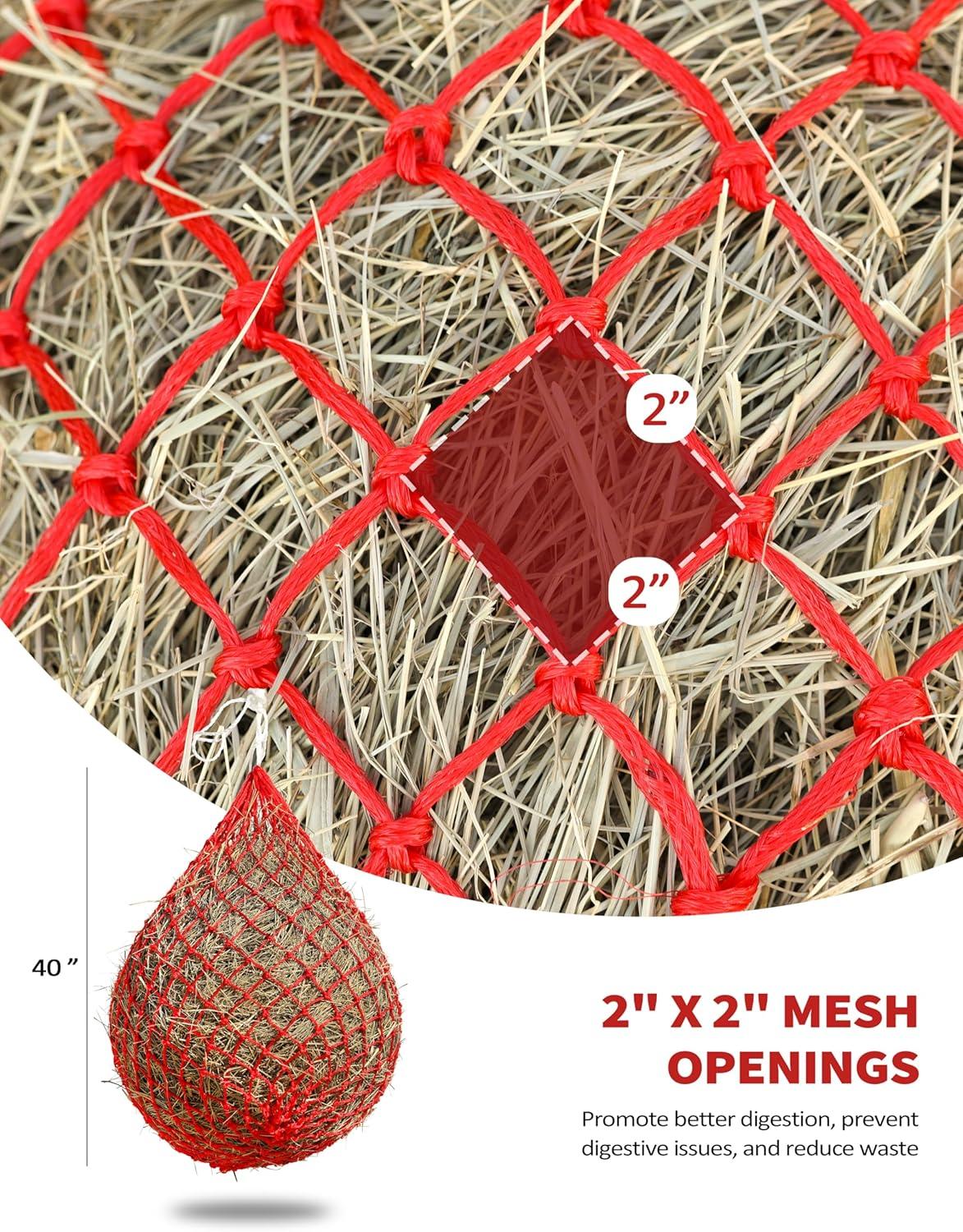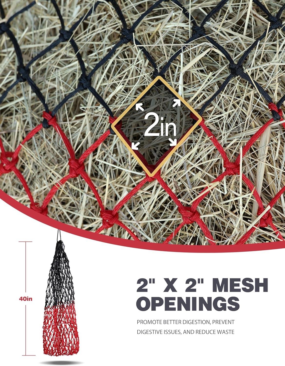 Harrison Howard Slow Feed Hay Net Horse 2 Pcs Horse Feeding Supplies Grass Green 40″ Length with 2″ Holes(Black-Red)