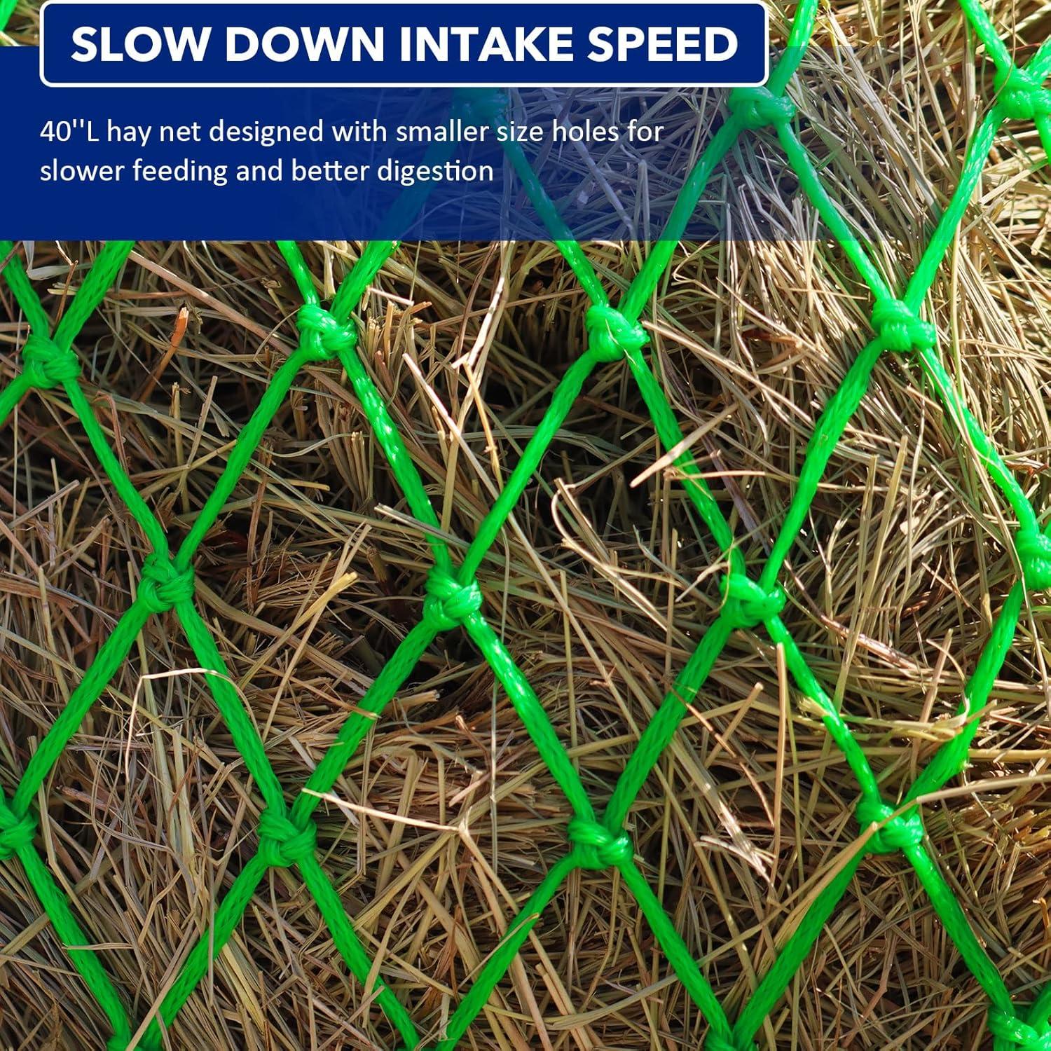 Harrison Howard Slow Feed Hay Net Horse 2 Pcs Horse Feeding Supplies Grass Green 40″ Length with 2″ Holes(Combo)