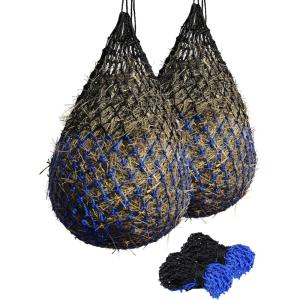 Harrison Howard Slow Feed Hay Net Horse 2 Pcs Horse Feeding Supplies Grass Green 40″ Length with 2″ Holes(Black-Blue)