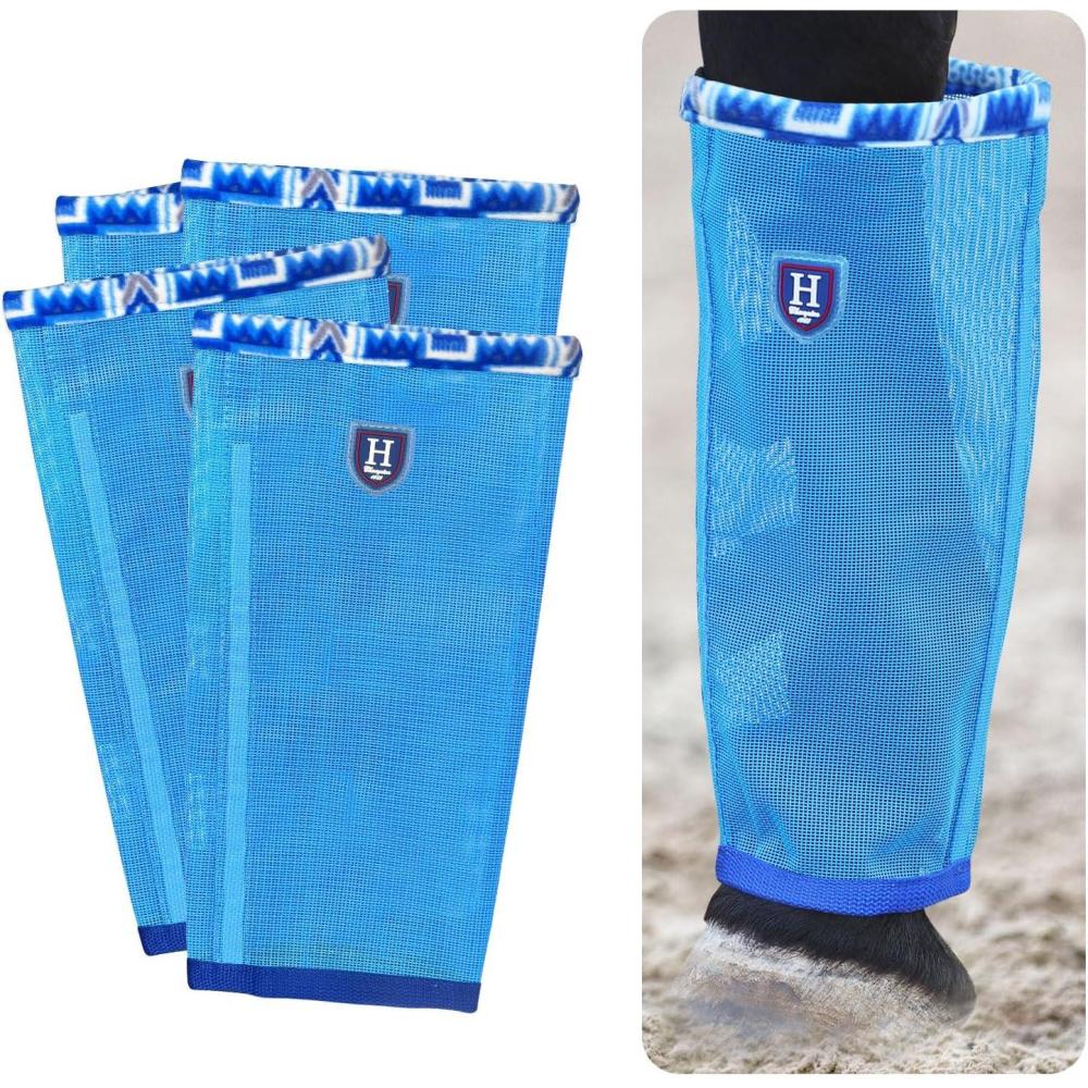 Fine Mesh Fly Boots Loose Fitting & Non-Slip Horse Fly Leggings Fleece Air Flow (Set of 4)(Cool Blue)