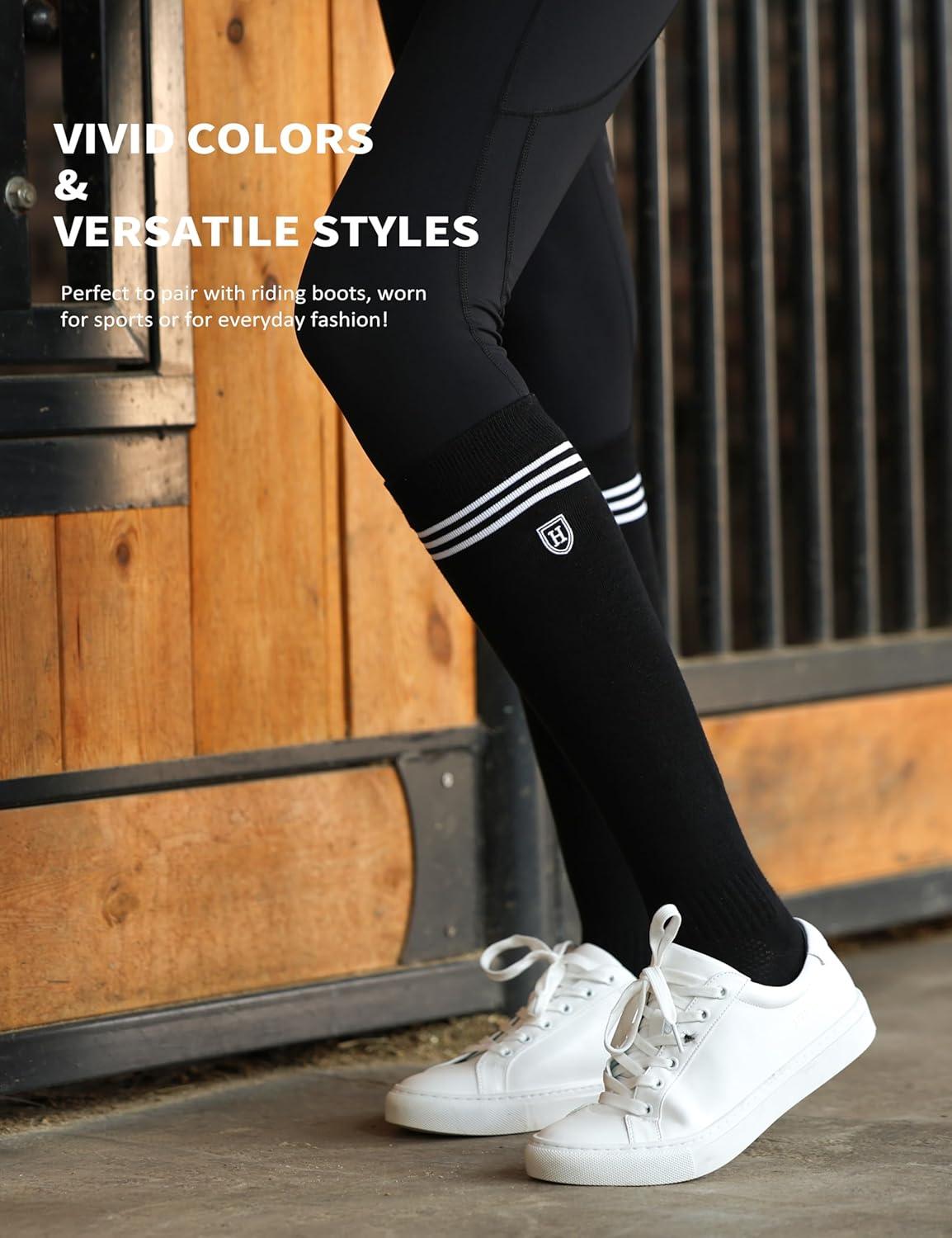 Harrison Howard 3 Pairs Premium Quality Equestrian Riding Socks for Horse Riding &Tall Boot Knee High Socks for Women(Black/Coffee/Summer Mint)