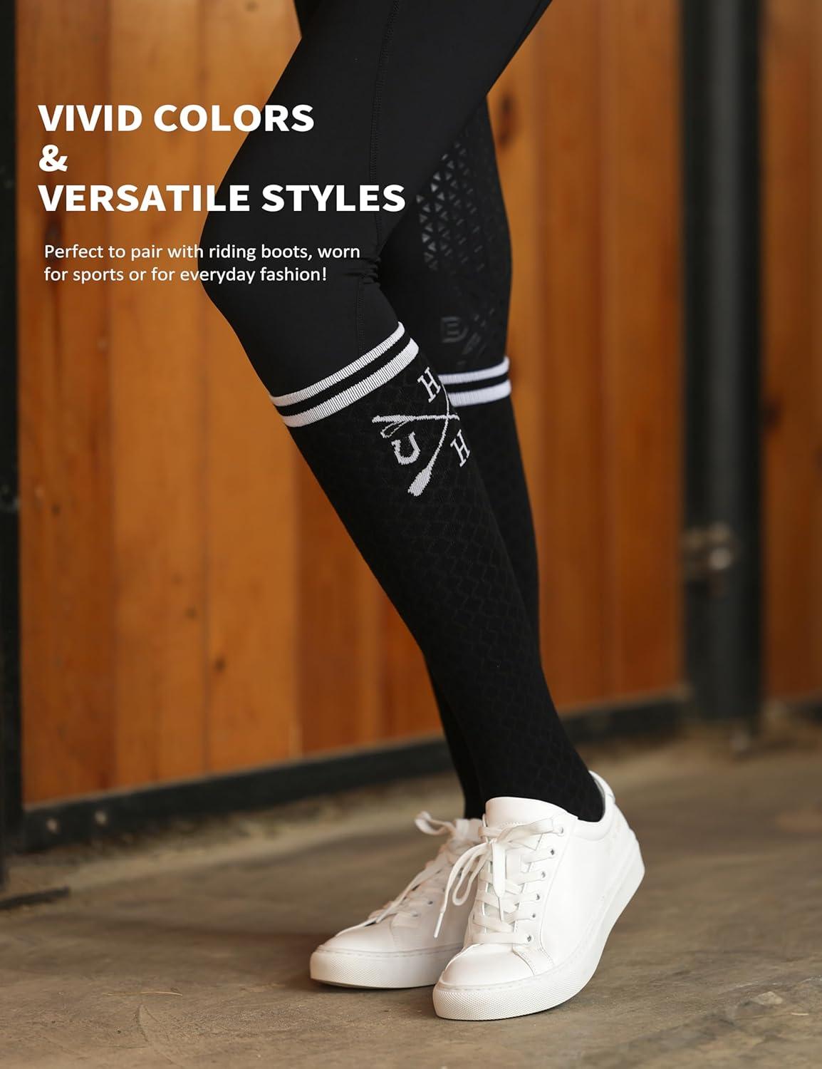 Harrison Howard 3 Pairs Premium Quality Equestrian Riding Socks for Horse Riding &Tall Boot Knee High Socks for Women(Black/Soft Lavendar/Peacock Blue)