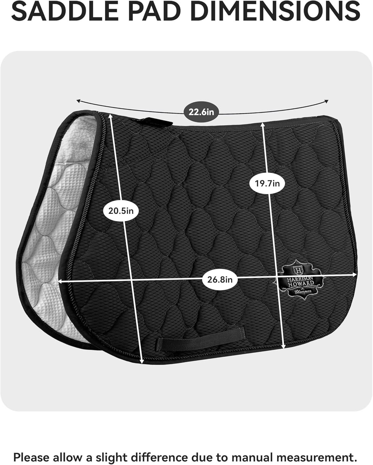 Harrison Howard 3D Air Mesh Saddle Pad for Horses – Breathable Shock-Absorbing All-Purpose English Saddle Pad(Black)