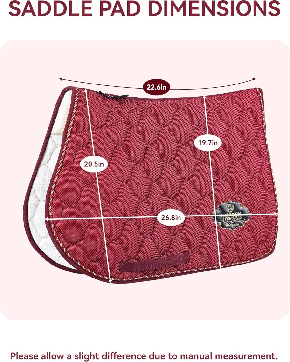 Harrison Howard 3D Air Mesh Saddle Pad for Horses – Breathable Shock-Absorbing All-Purpose English Saddle Pad(Burgundy)
