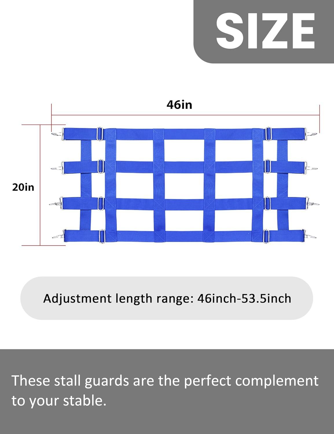 Harrison Howard Adjustable Horse Stall Guard Poly 4 Slat Door Guard for Horse Barns Sturdy Webbing Grid Design Stall Guard Red(Blue)