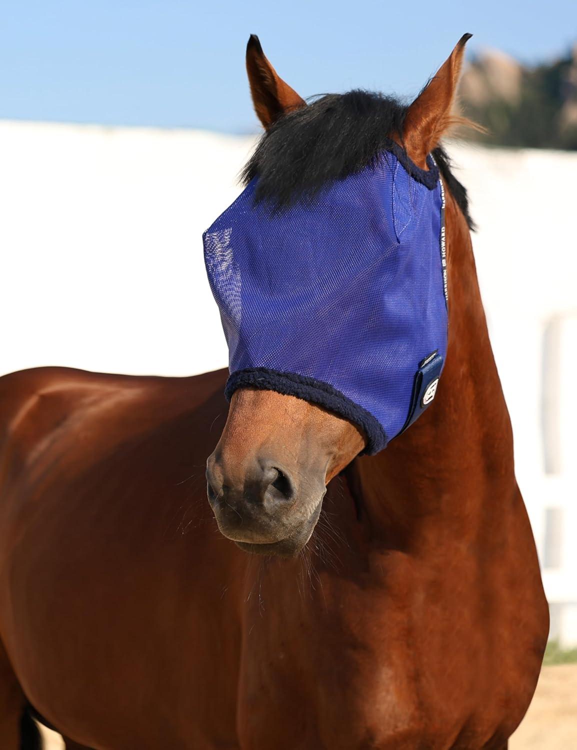 Harrison Howard All Round Mesh Horse Fly Mask UV Protective with Fleece Padded Edging Vibrant Orange L(Deep Navy)