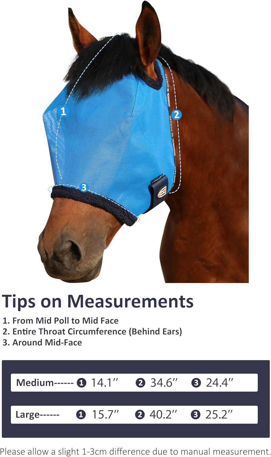 SOFT FLEECE TRIM: Softly padded edges to reduce pressure marks on the horse's skin, making this fly mask super comfortable to wear. In the meantime, it keeps debris and flying particles from getting under the fly mask.