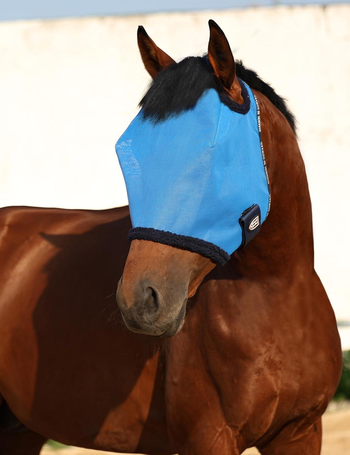 Harrison Howard All Round Mesh Horse Fly Mask UV Protective with Fleece Padded Edging Vibrant Orange L(Sky Blue)