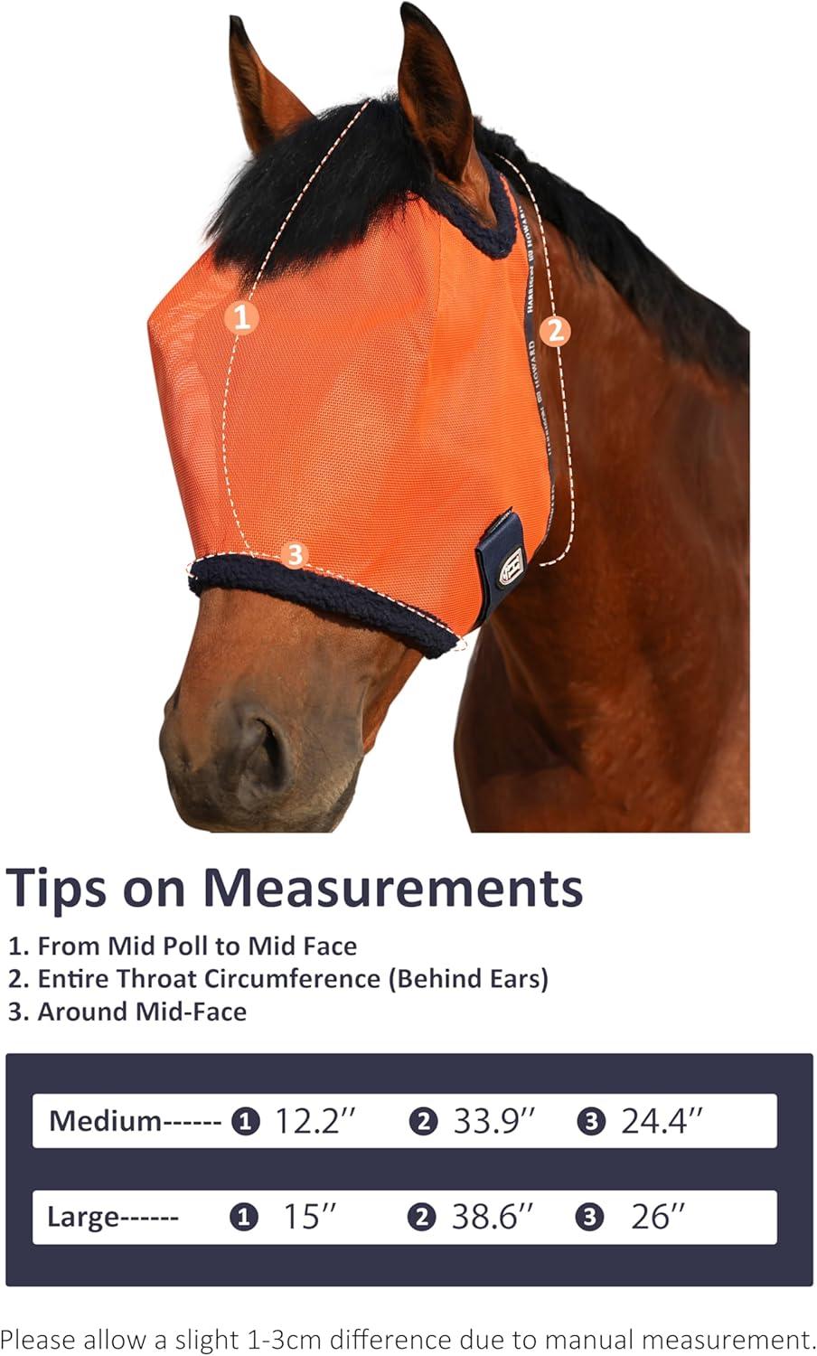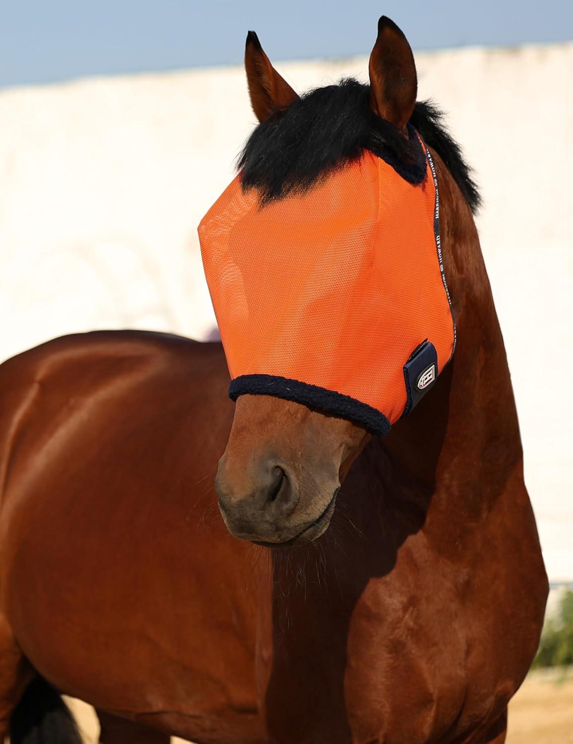 Harrison Howard All Round Mesh Horse Fly Mask UV Protective with Fleece Padded Edging Vibrant Orange L(Vibrant Orange)