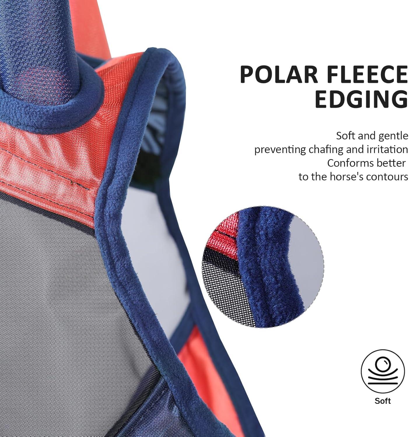 Lightweight, Multi-Function Fabrics: Ultra-fine, ventilating, and long-lasting nylon mesh offers reliable UV protection for your horse's skin, it effectively prevents sun damage and bleaching. Quality edging along the nose cover enhances durability.