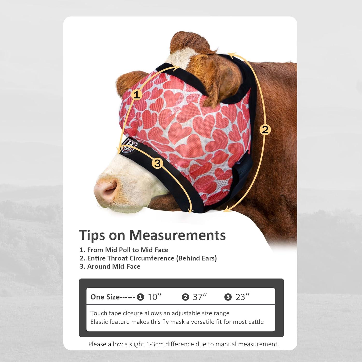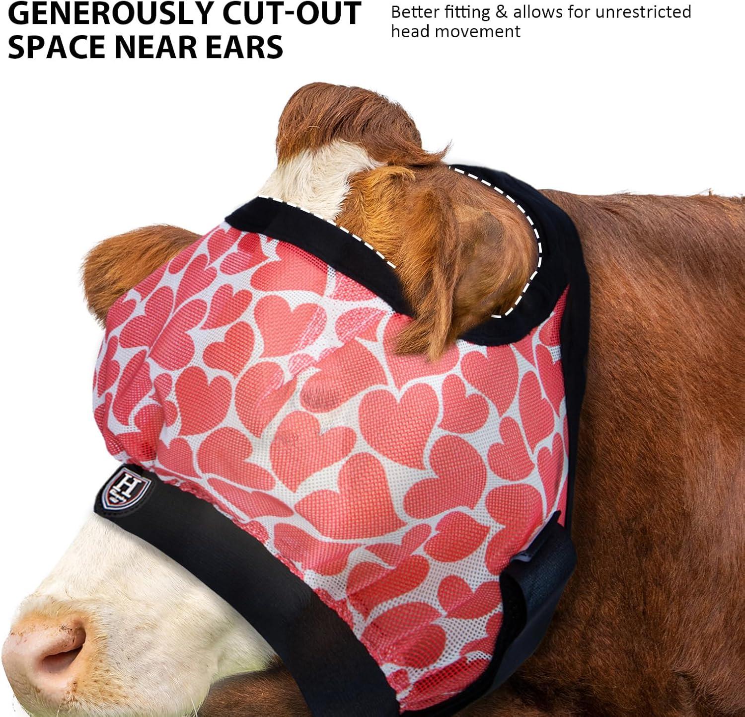 Harrison Howard Cattle Livestock Fly Mask Breathable Mesh Padded Edging with Fun Patterns Large Spacing Forelock Opening Design Adjustable Fit for Cattle Black(Heart)