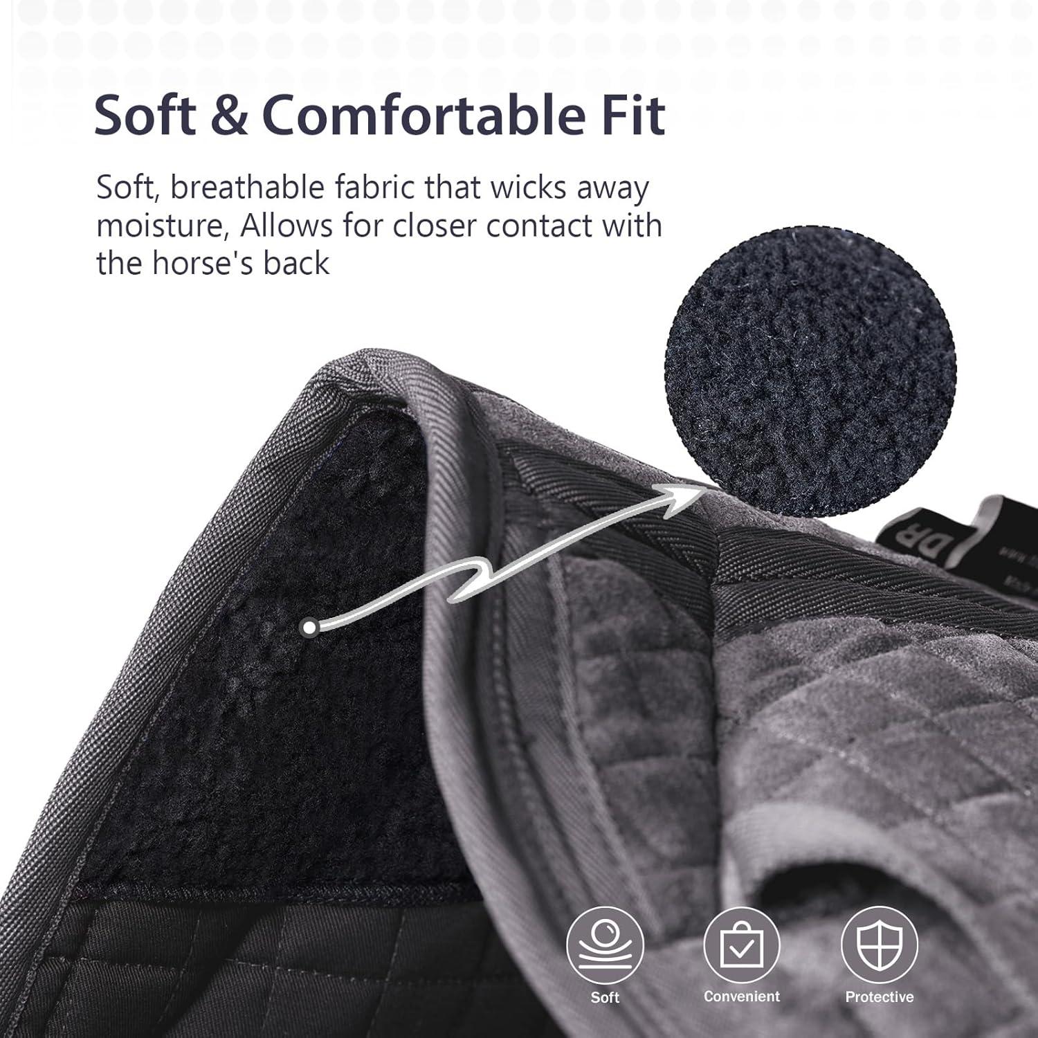 Superior Fabric Quality: Made from premium hypoallergenic suede fabric paired with a high-density polyester-cotton lining, this saddle pad ensures excellent breathability, effective temperature regulation, and efficient moisture-wicking for enhanced comfort.