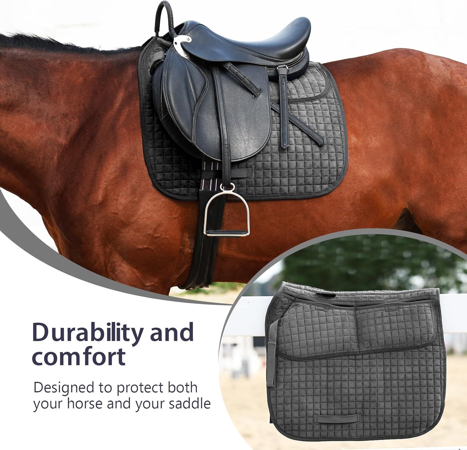 Harrison Howard Diamond Quilted Dressage Saddle Pad Adjustable with 4 Pockets and Foam Inserts with Differentiated Thickness Horse Riding Pad with Added Cushioning and Comfort(Gray)