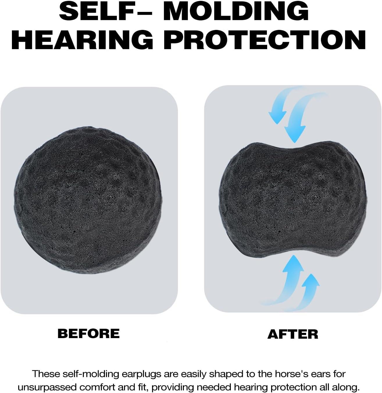 SELF-MOLDING HEARING PROTECTION: Easily achieve superior noise isolation, and helps keep the horse focused without distraction. These self-molding earplugs are easily shaped to the horse’s ears for unsurpassed comfort and fit, providing needed hearing protection all along.