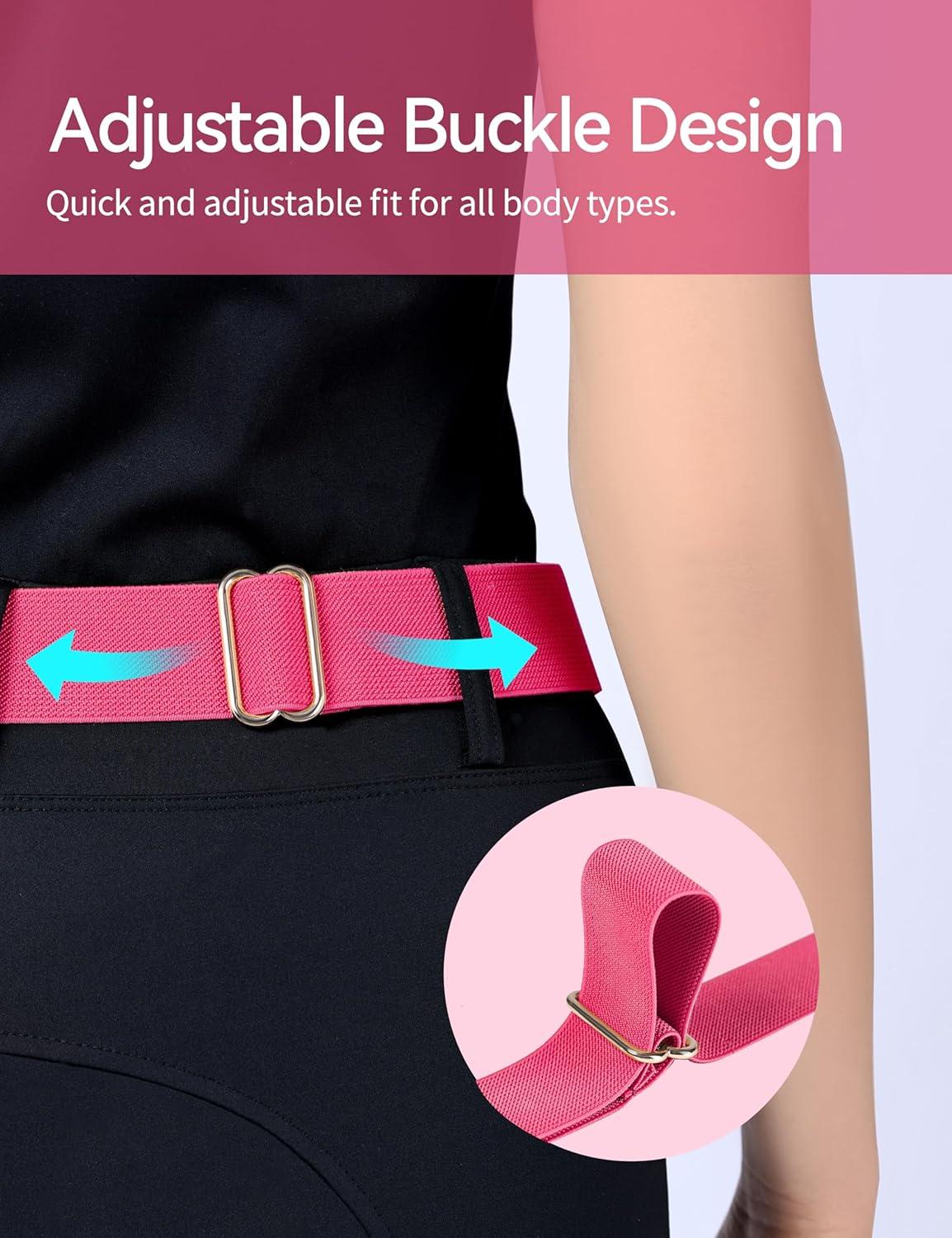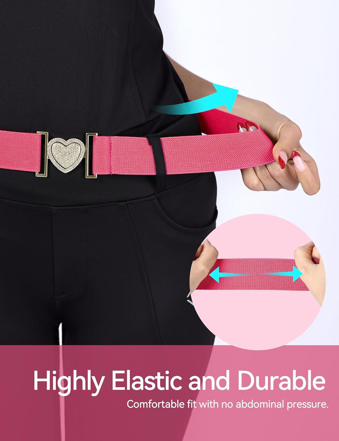 Harrison Howard Elastic Horse Riding Belt with Flat Buckle Stretchable for Horseback Riding Elastic Belt for Women(Glamour Heart Magenta)