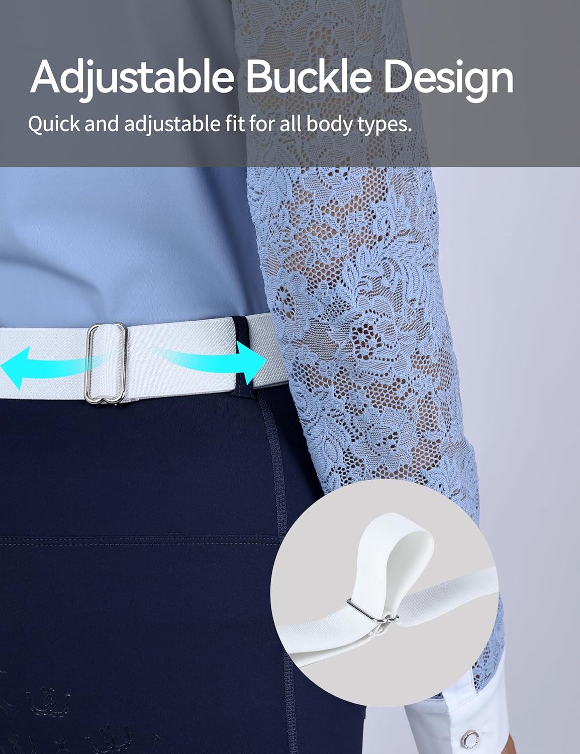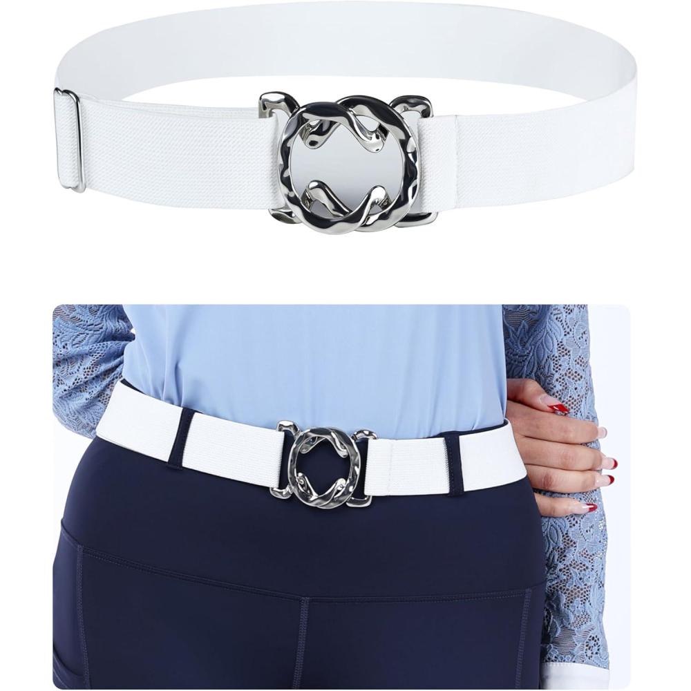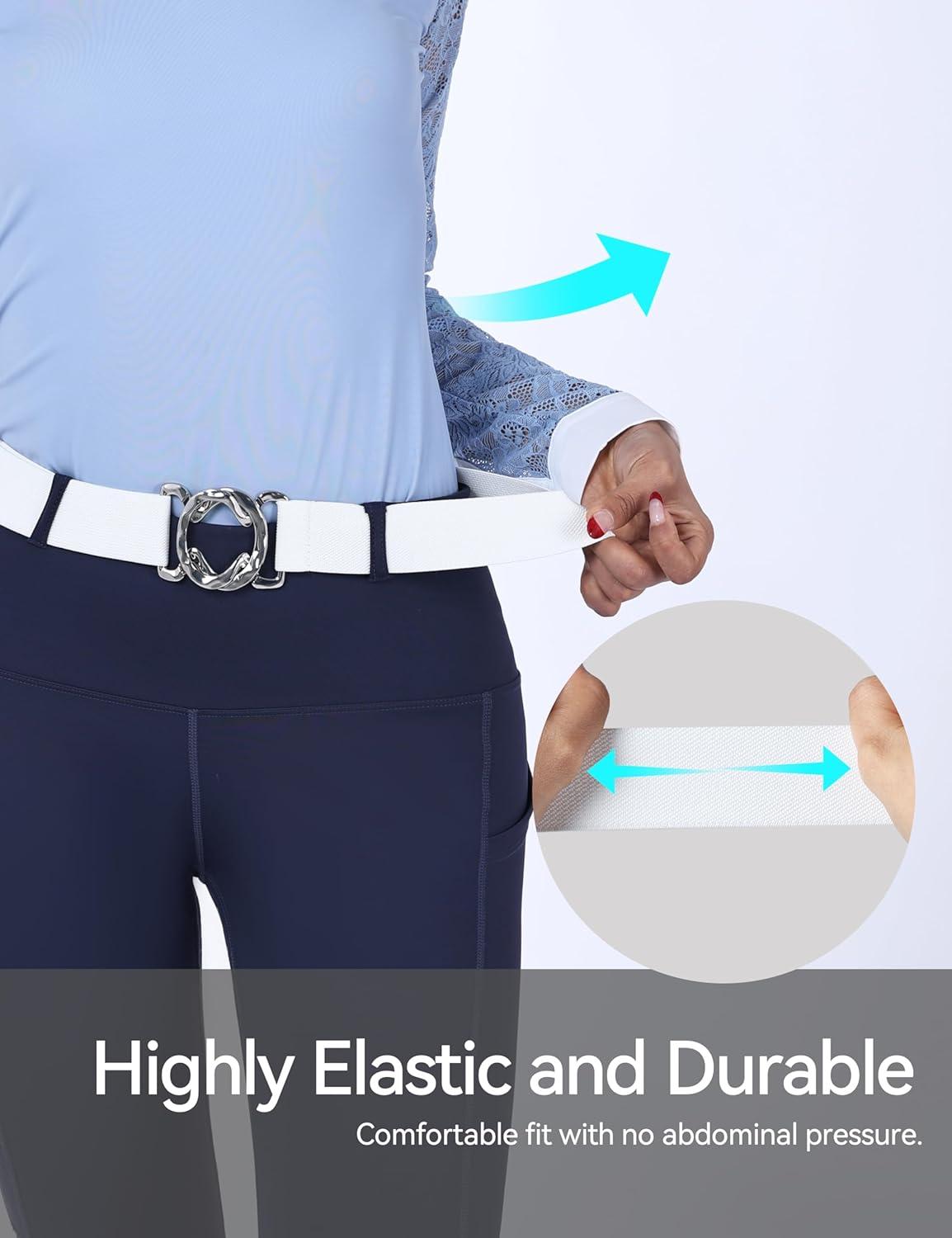 Harrison Howard Elastic Horse Riding Belt with Flat Buckle Stretchable for Horseback Riding Elastic Belt for Women(Matte Edge White)