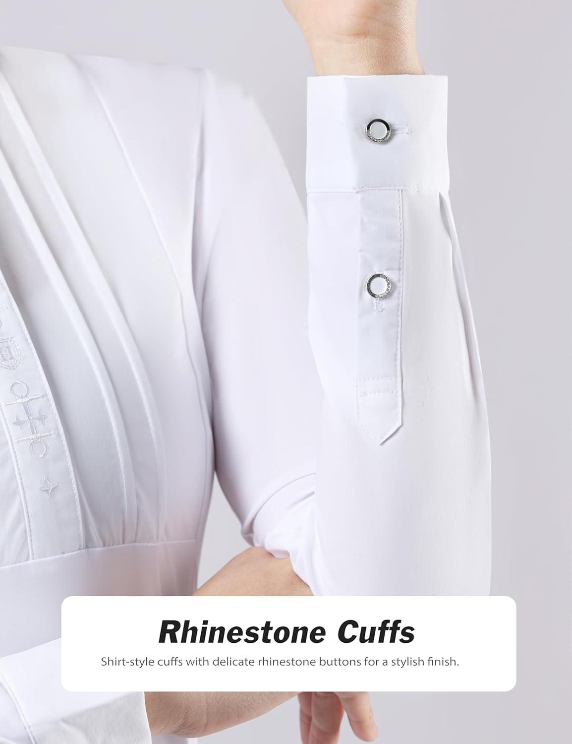 Harrison Howard Equestrian Pleated Bib Show Shirt Rider Top Horse Riding Long Sleeve with Embroidery(White)