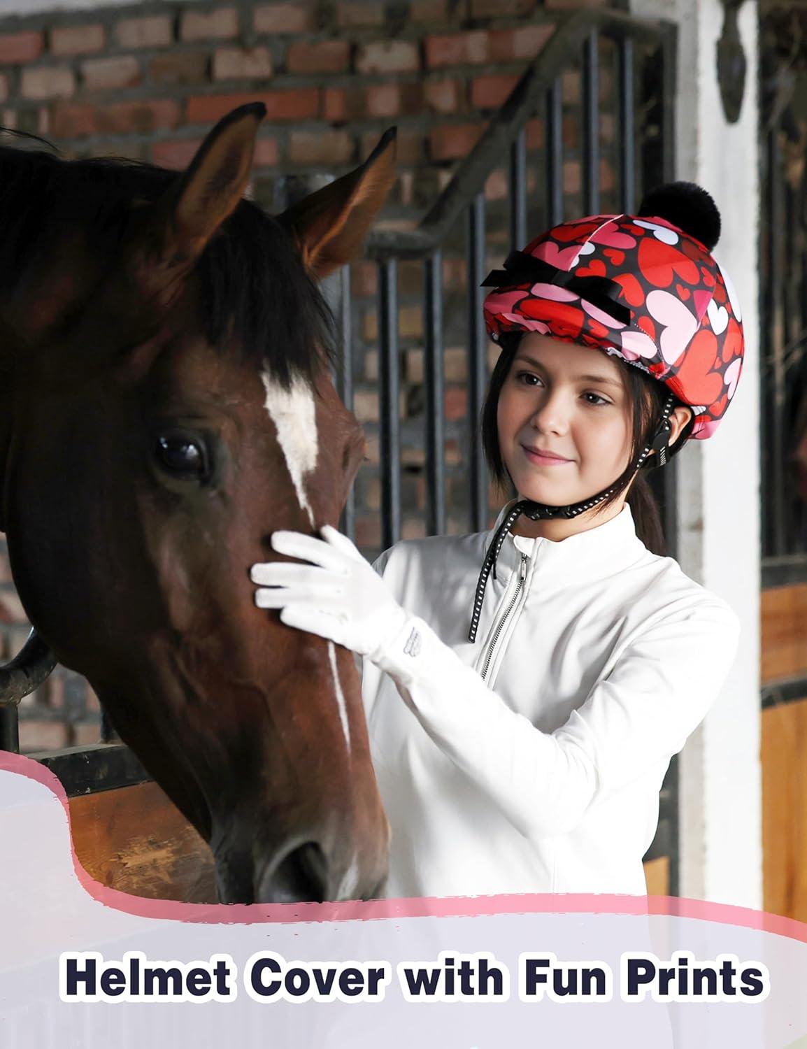 Harrison Howard Equestrian Riding Helmet Cover with Cute Bow Cover ONLY, Helmet NOT Included(Cute Hearts)