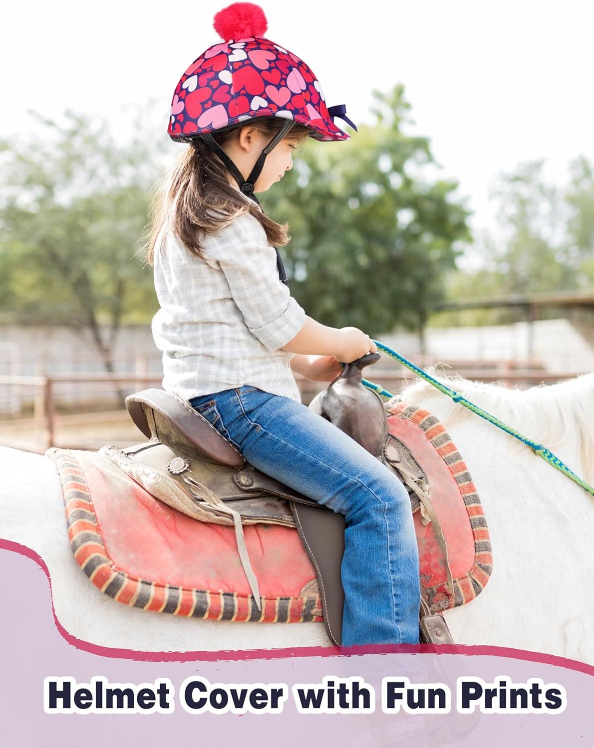 Harrison Howard Equestrian Riding Helmet Cover with Cute Bow Cover ONLY, Helmet NOT Included(Hearty Hearts)