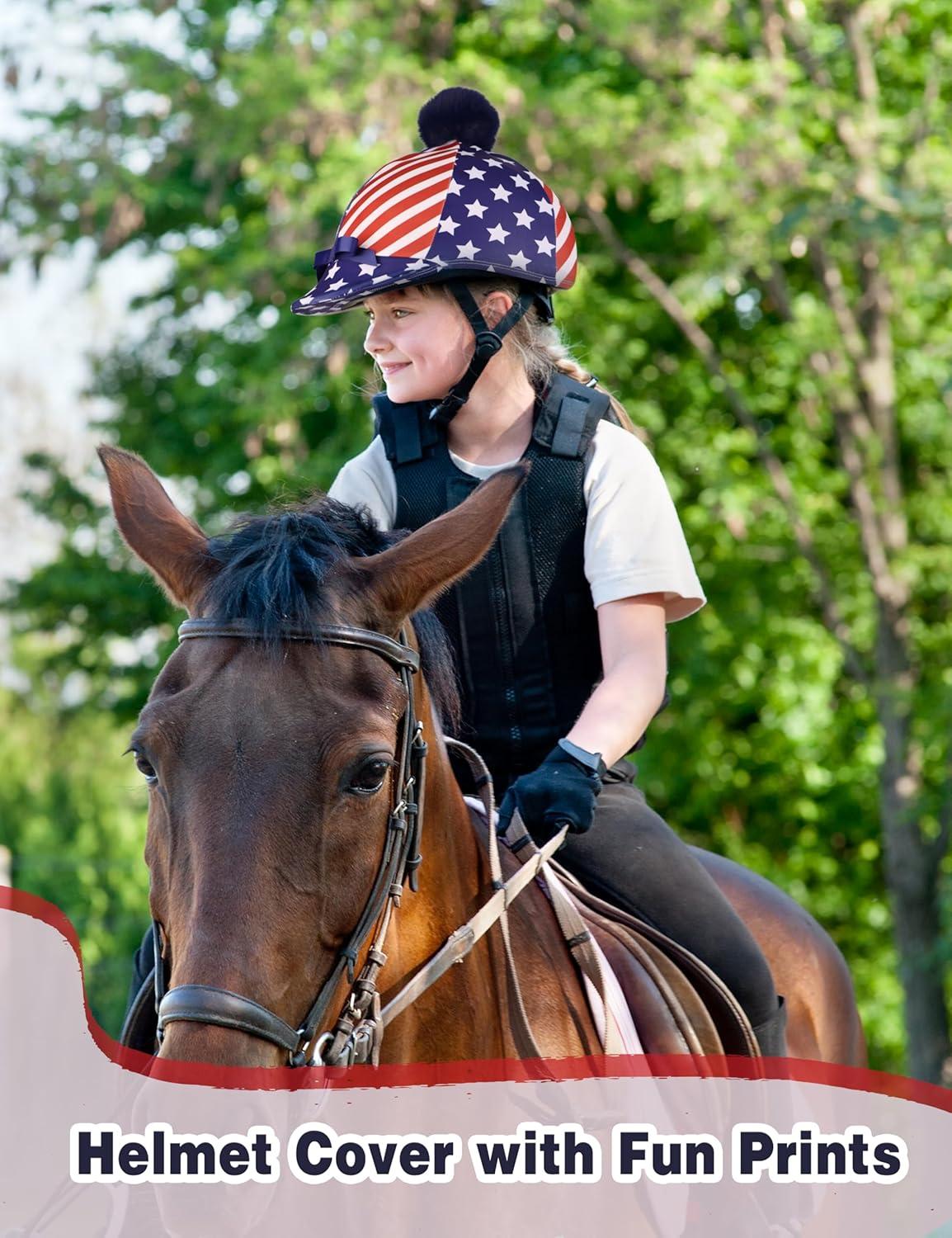 Harrison Howard Equestrian Riding Helmet Cover with Cute Bow Cover ONLY, Helmet NOT Included(US Flag)
