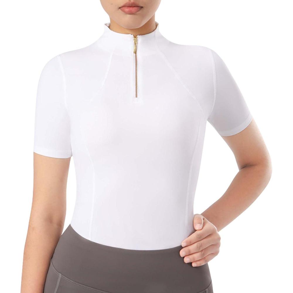 Harrison Howard Equestrian Tops for Women Short Sleeve Quick-Dry Sports Shirt(White)