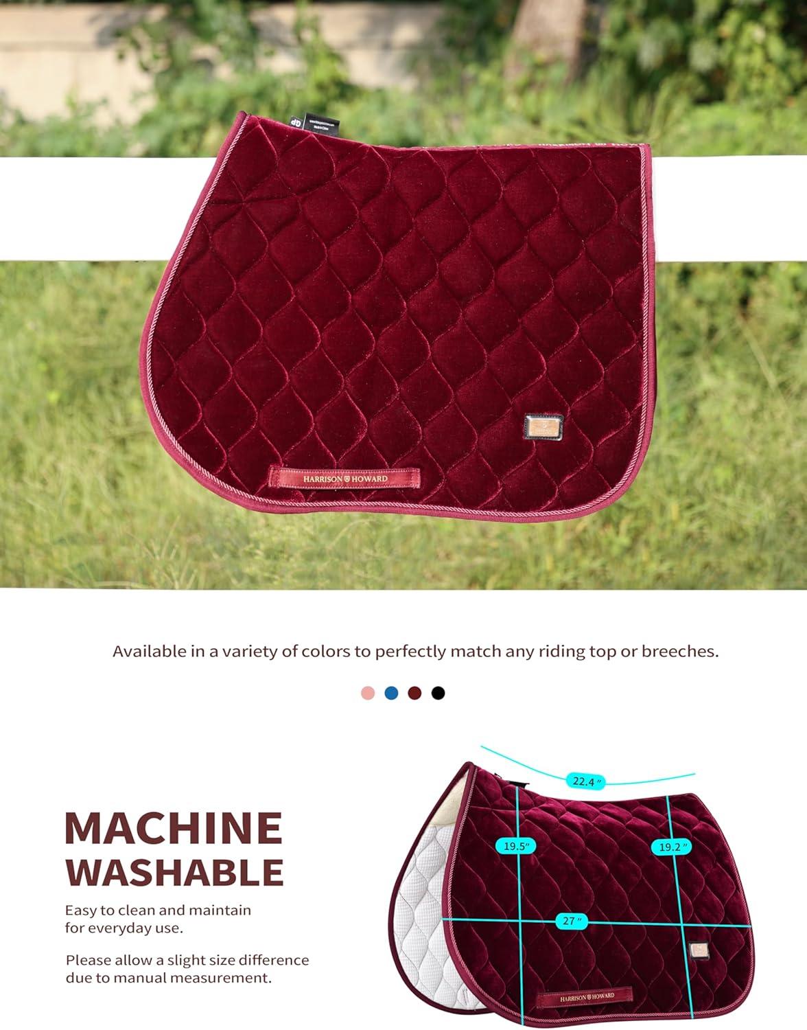Durable and Breathable: Crafted from external plush velvet that is breathable, elegant, and sophisticated, and lined with a soft, wear-resistant waffle weave that ensures optimal airflow. Even during intense competition when horses sweat excessively, this English saddle pad keeps their backs dry.