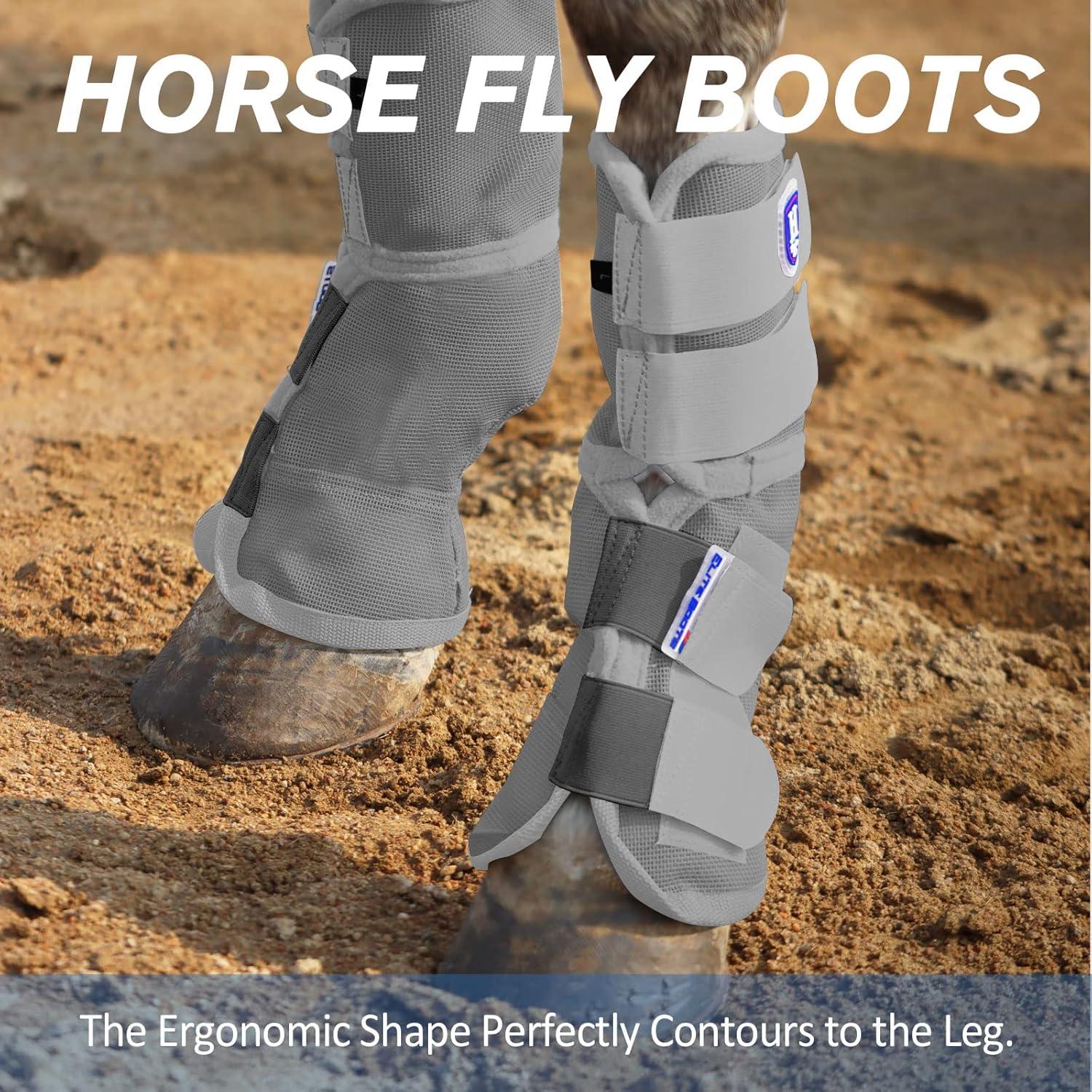 RELIABLE LEG GUARD: This pair of fly boots shield your horse's front legs, and a specially contoured shape hugs your horse's coronet for a comfortable fit. The boot fully allows heat and sweat to escape, preventing the legs from sweating and chafing.