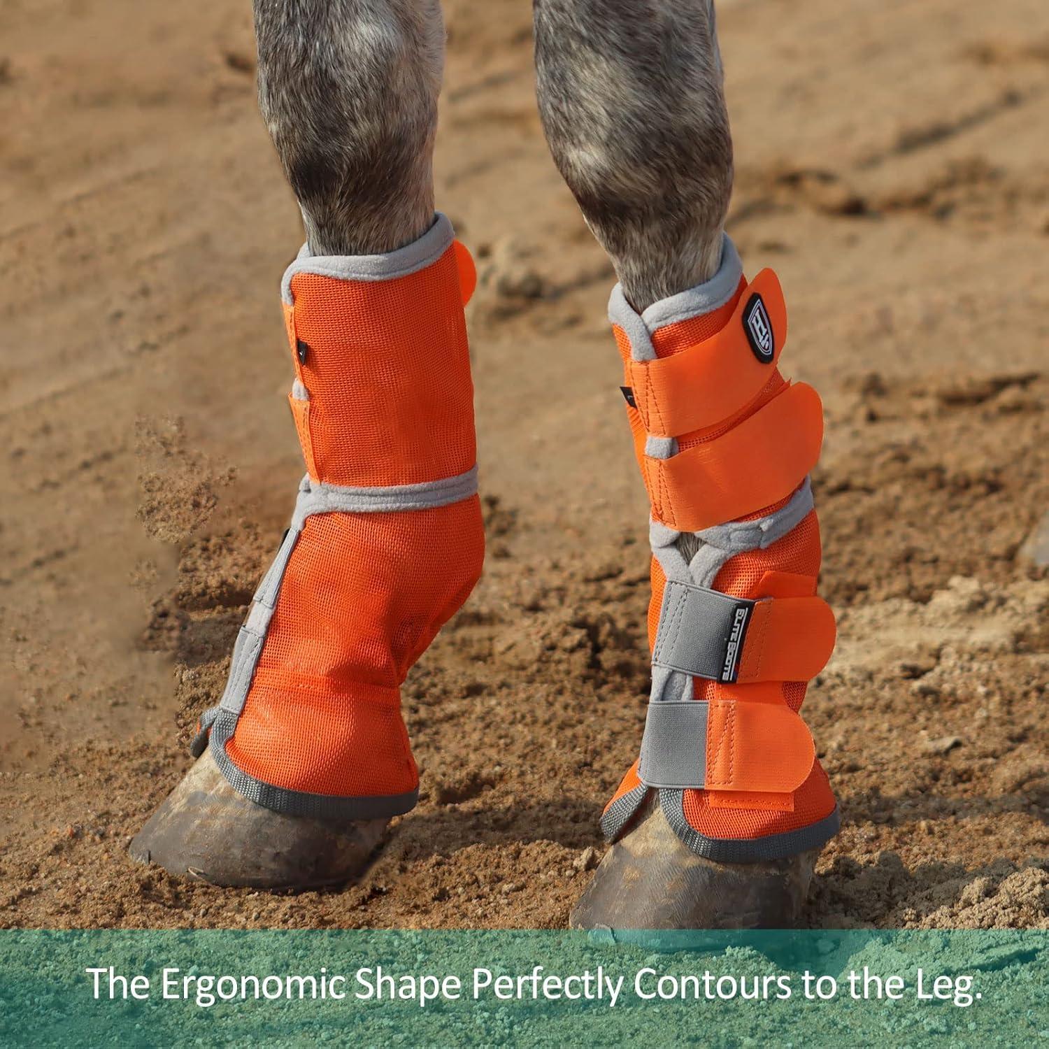 RELIABLE LEG GUARD: These boots shield both front and rear legs, a special contoured shape hugs your horse’s coronet for a comfortable fit. The boot fully allows heat and sweat to escape and prevents the legs from sweating and chafing.