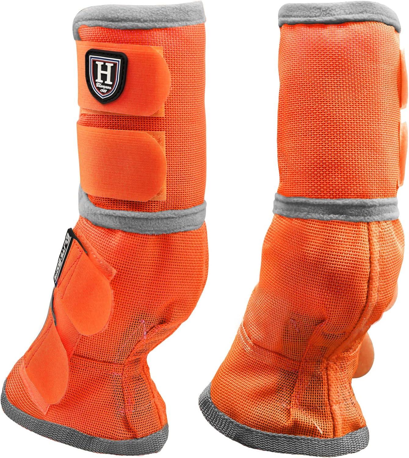 Harrison Howard Horse Fly Boots Perfect Contoured Fit Leg Guards Dense Mesh Boots with Ventilated Comfort Reliable Protection from Summer Elements Set of 4 Purple M(Vibrant Orange)