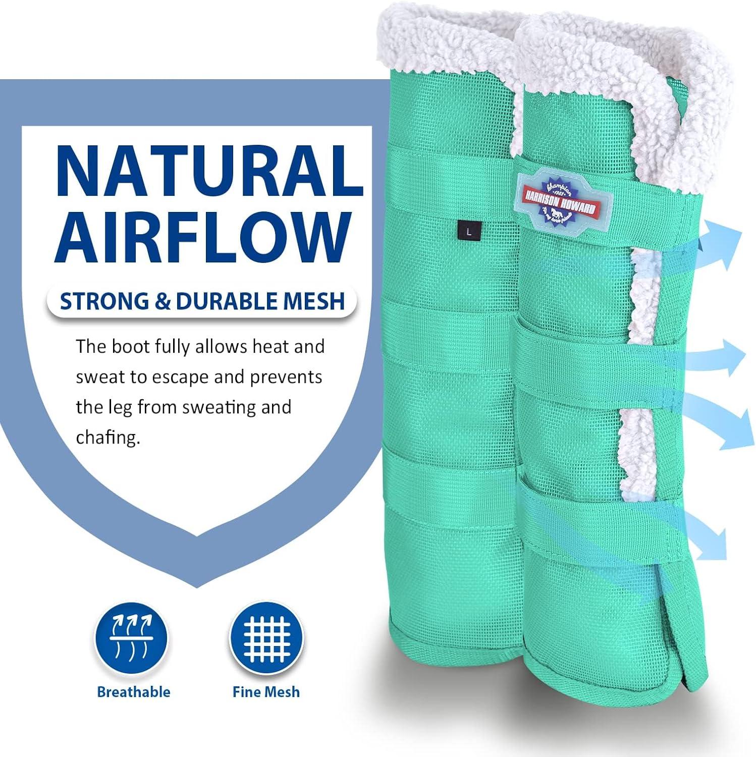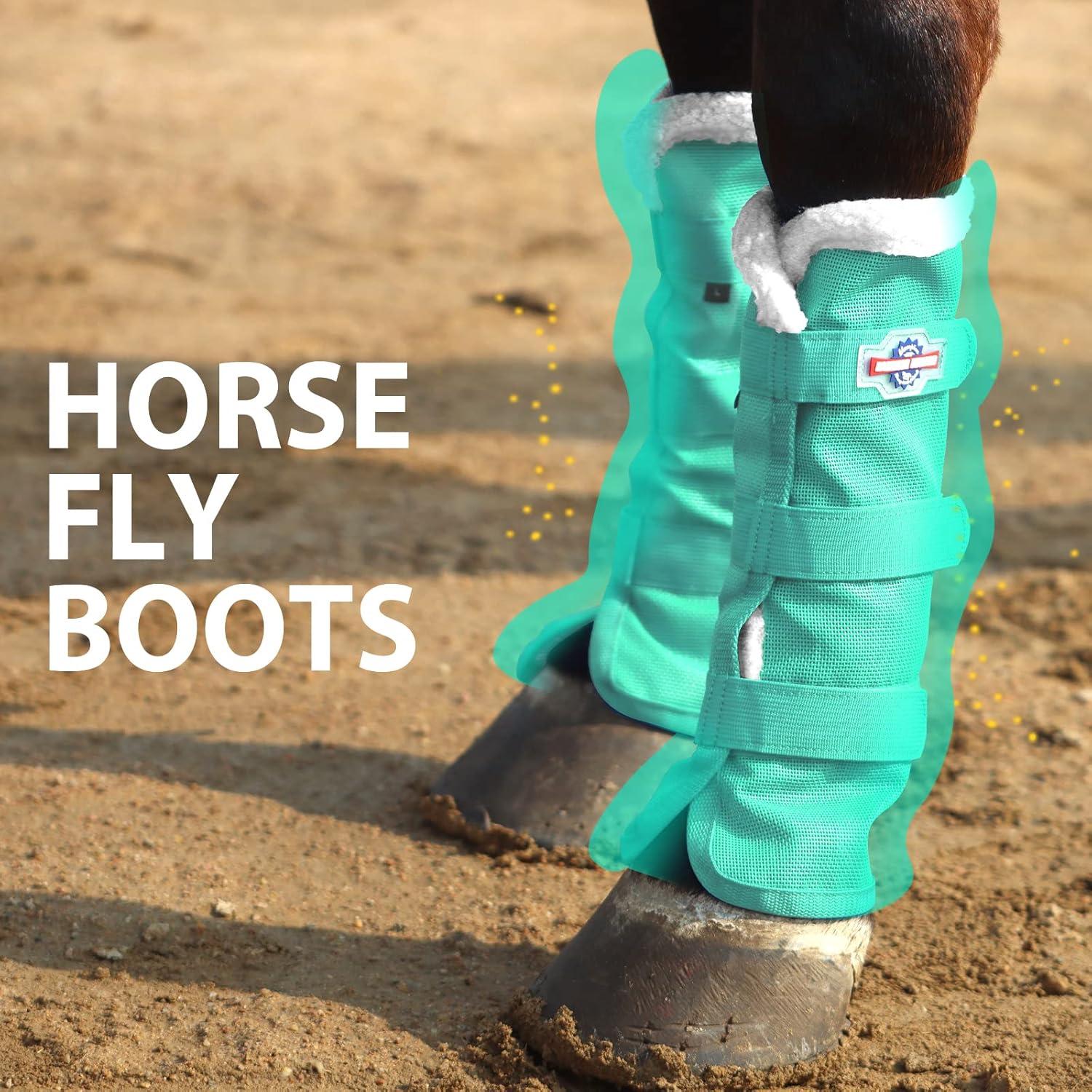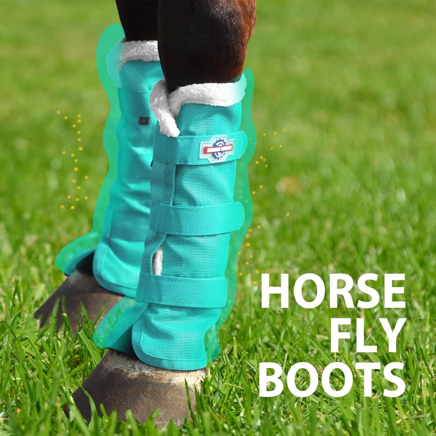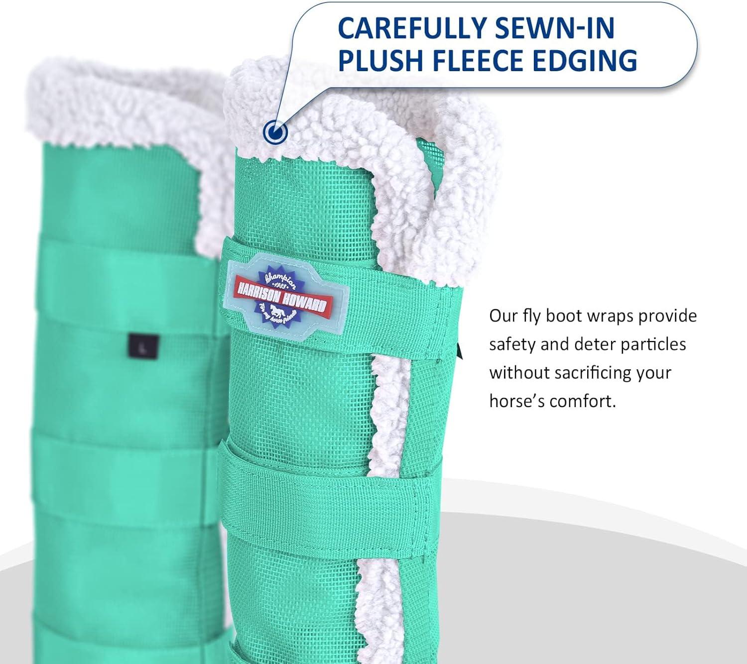 Harrison Howard Horse Fly Boots with Fleece Trim Durable Breathable Cool Mesh Adjustable Closure(Mint)